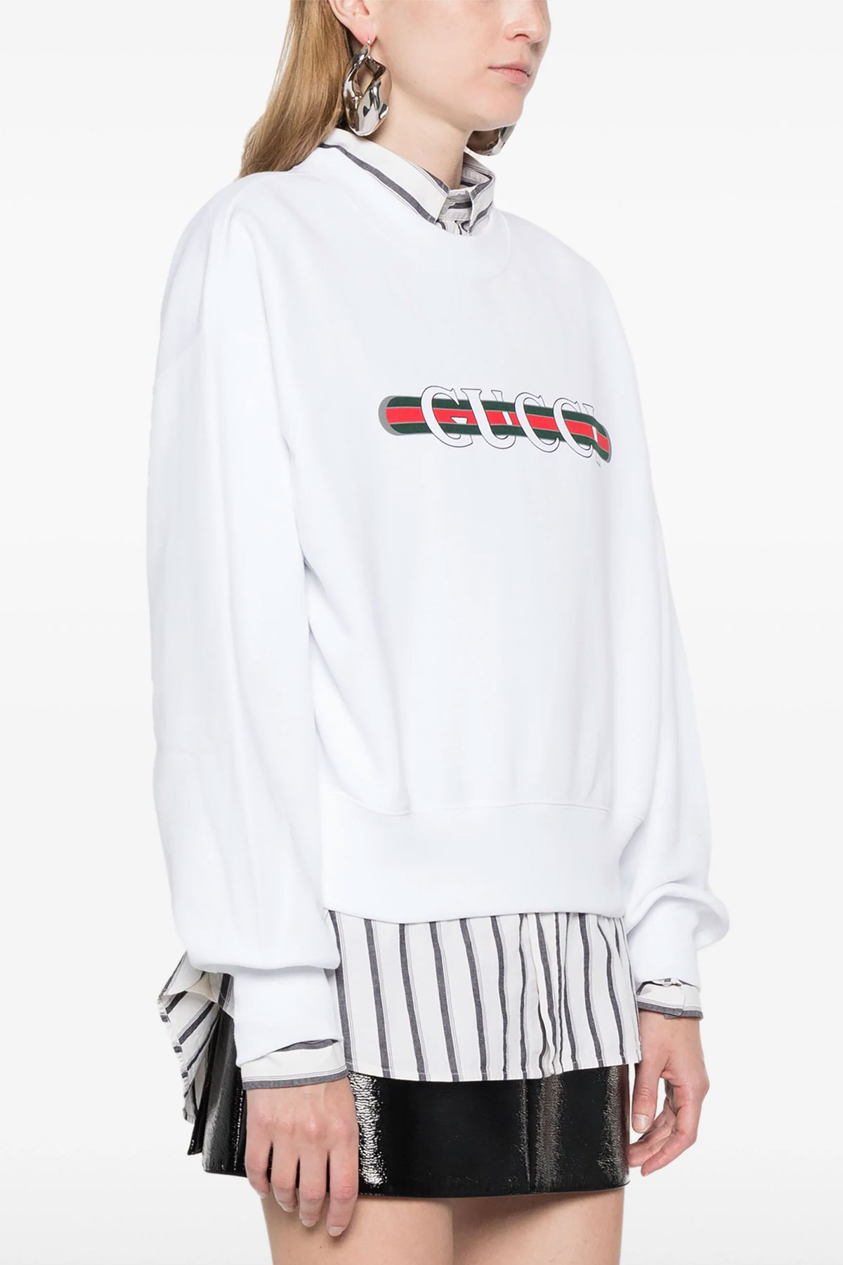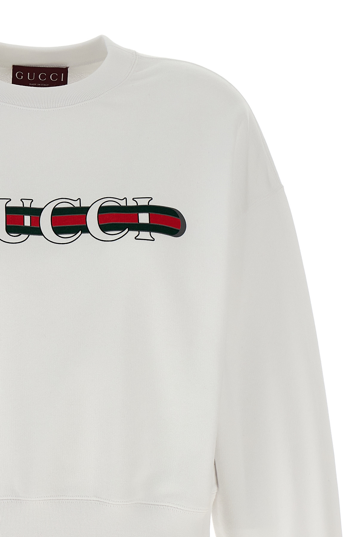 Cotton sweatshirt with front 'Gucci Web' logo print, crew neck, long cuffed sleeves.