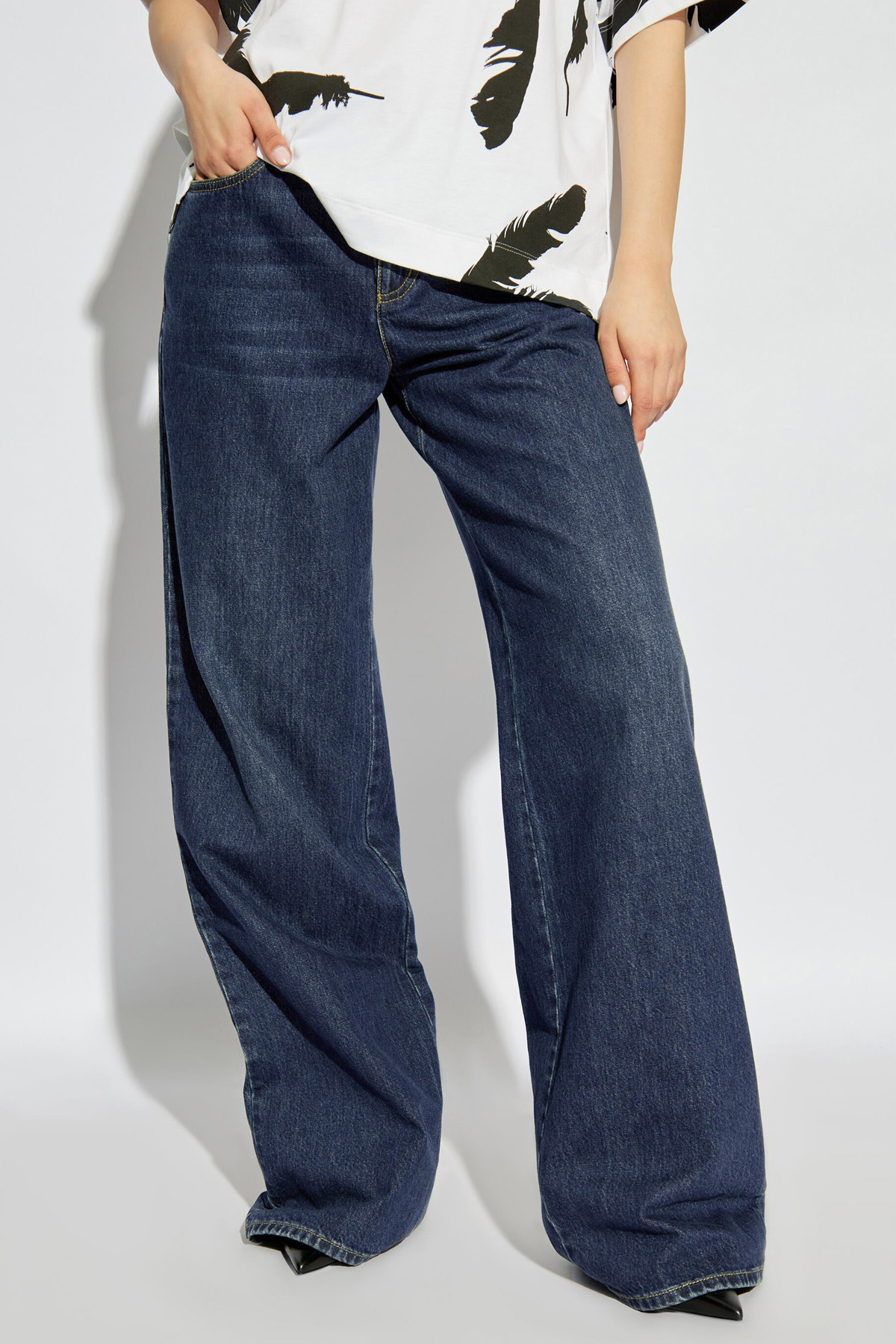 Indigo cotton denim jeans, zip and button closure, five pockets, leather logo tag.