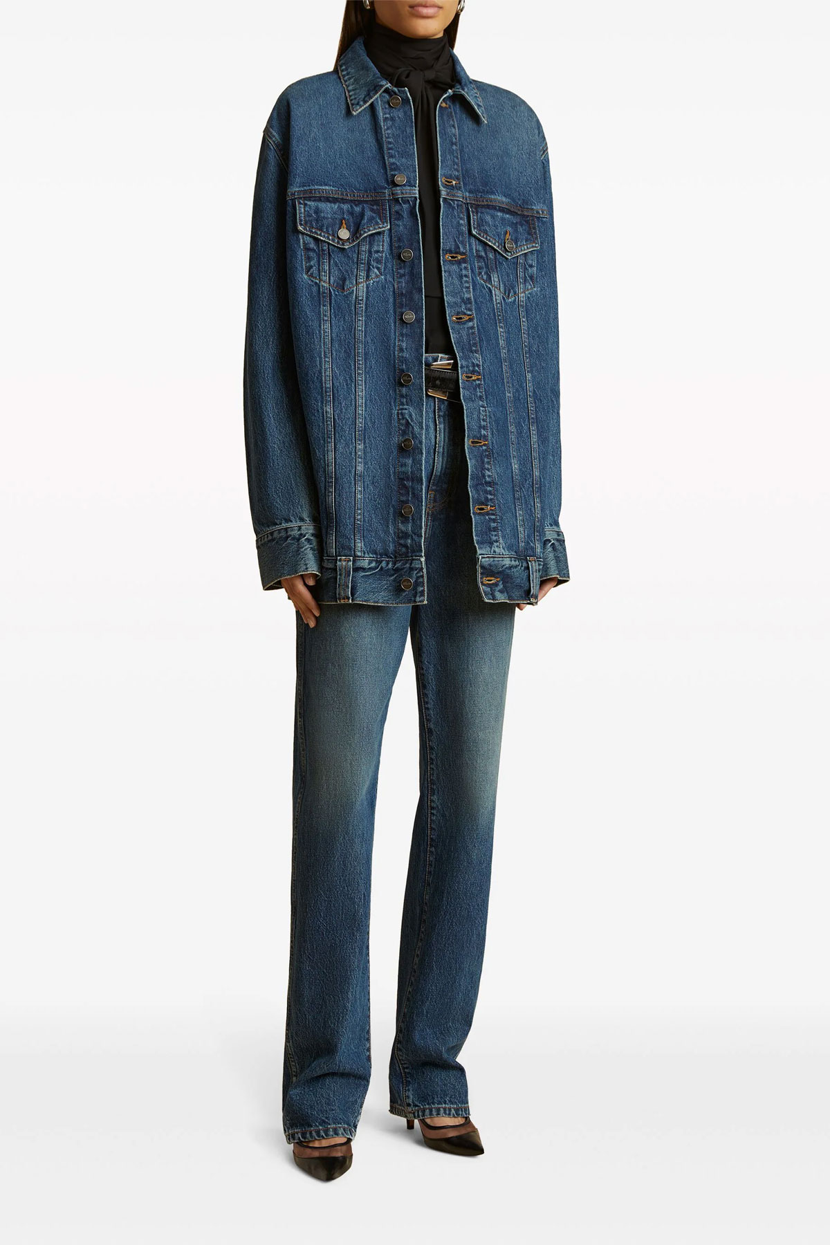 'Ross' cotton denim jacket with pockets, button closure, long cuffed sleeves.