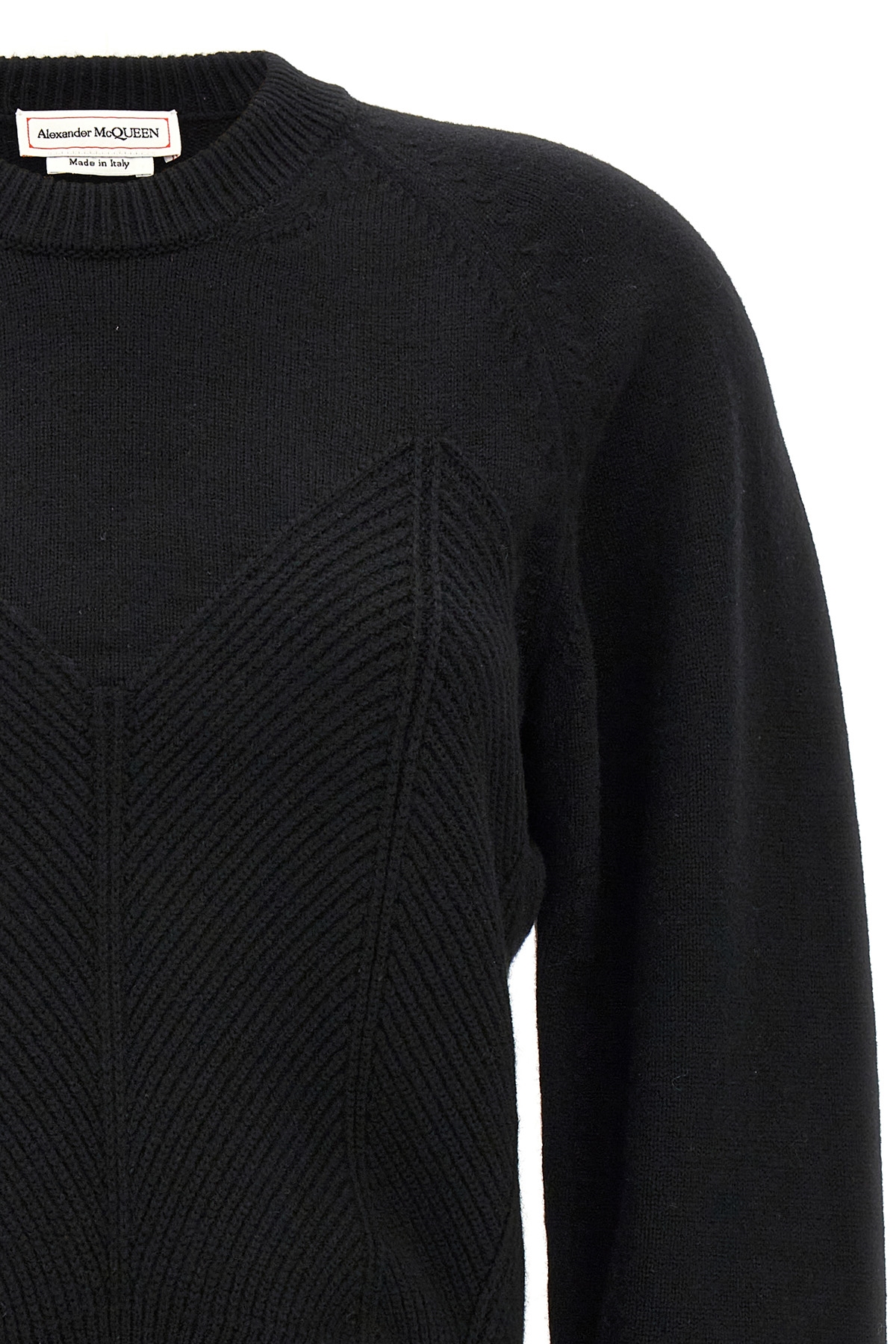 'Chevron Corset' wool and cashmere sweater with crew neck, long cuffed sleeves, front splits detail.