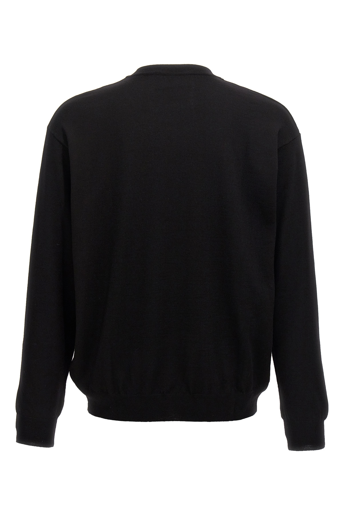 Wool sweater with front logo intarsia, crew neck, long cuffed sleeves.