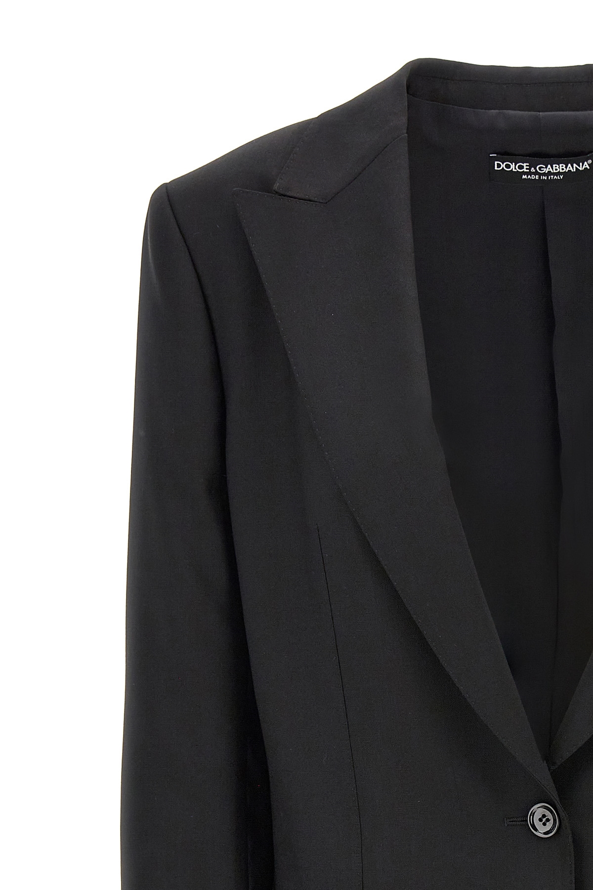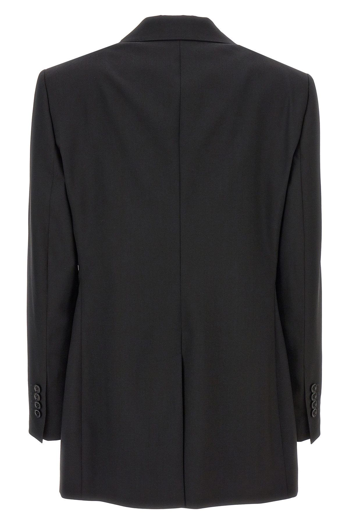 'Mambo' single-breasted wool blazer with button closure, peak lapels, pockets, padded shoulders, long sleeves, back vent.