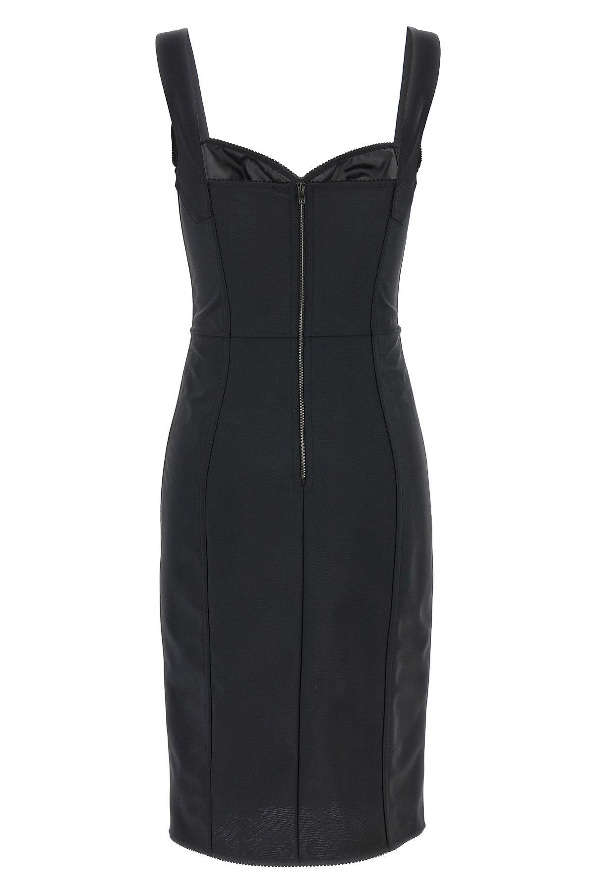 Powernet and lace midi corset dress, sweetheart neckline, back zip closure.
