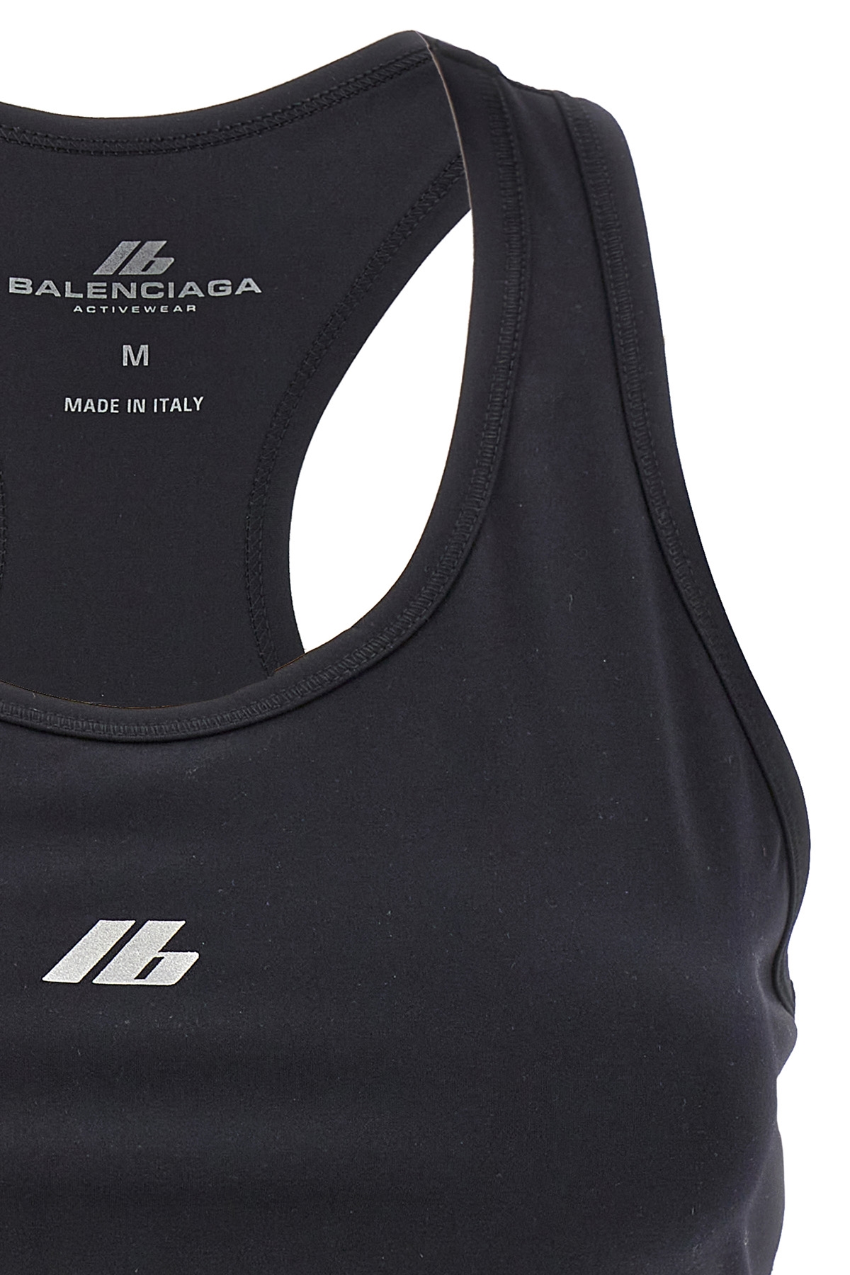 Sporty top in stretch technical fabric with reflective logo on the front.