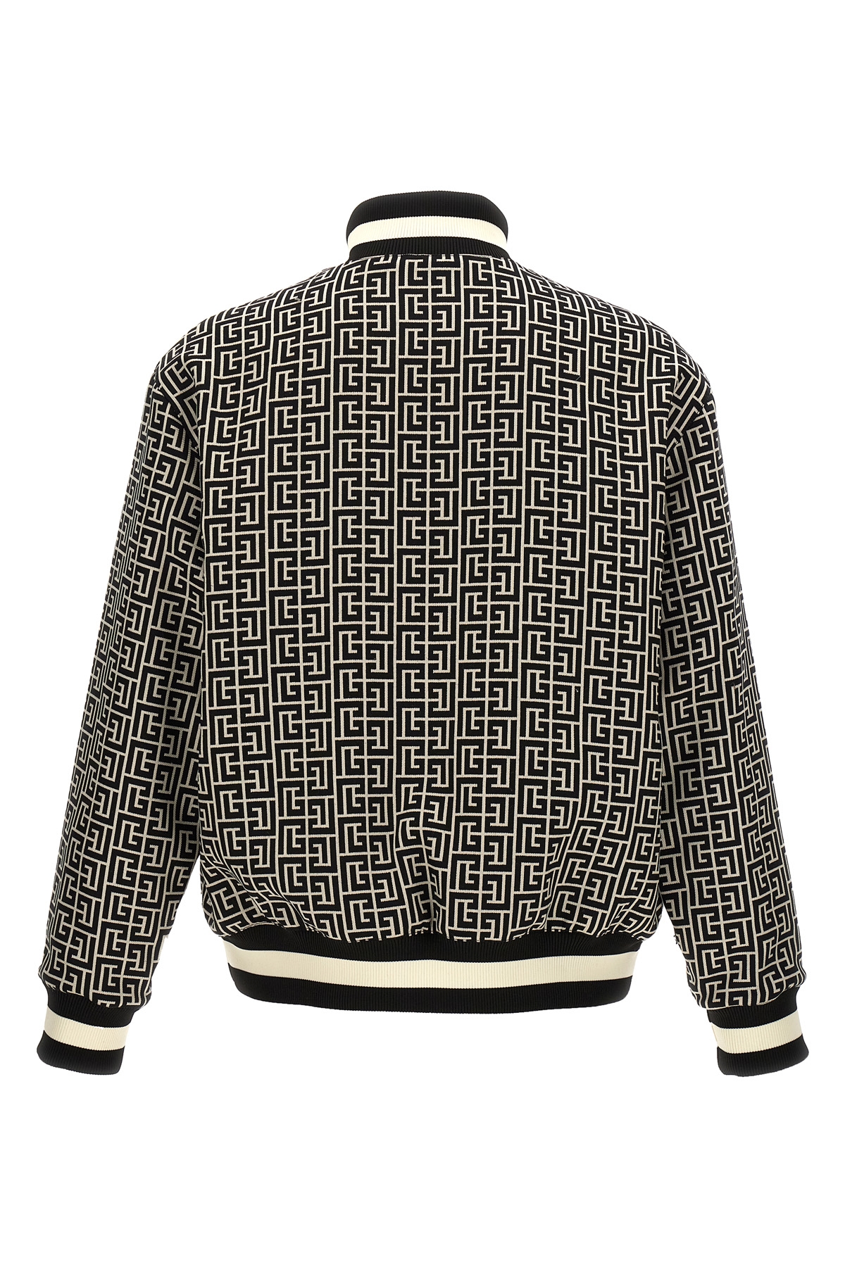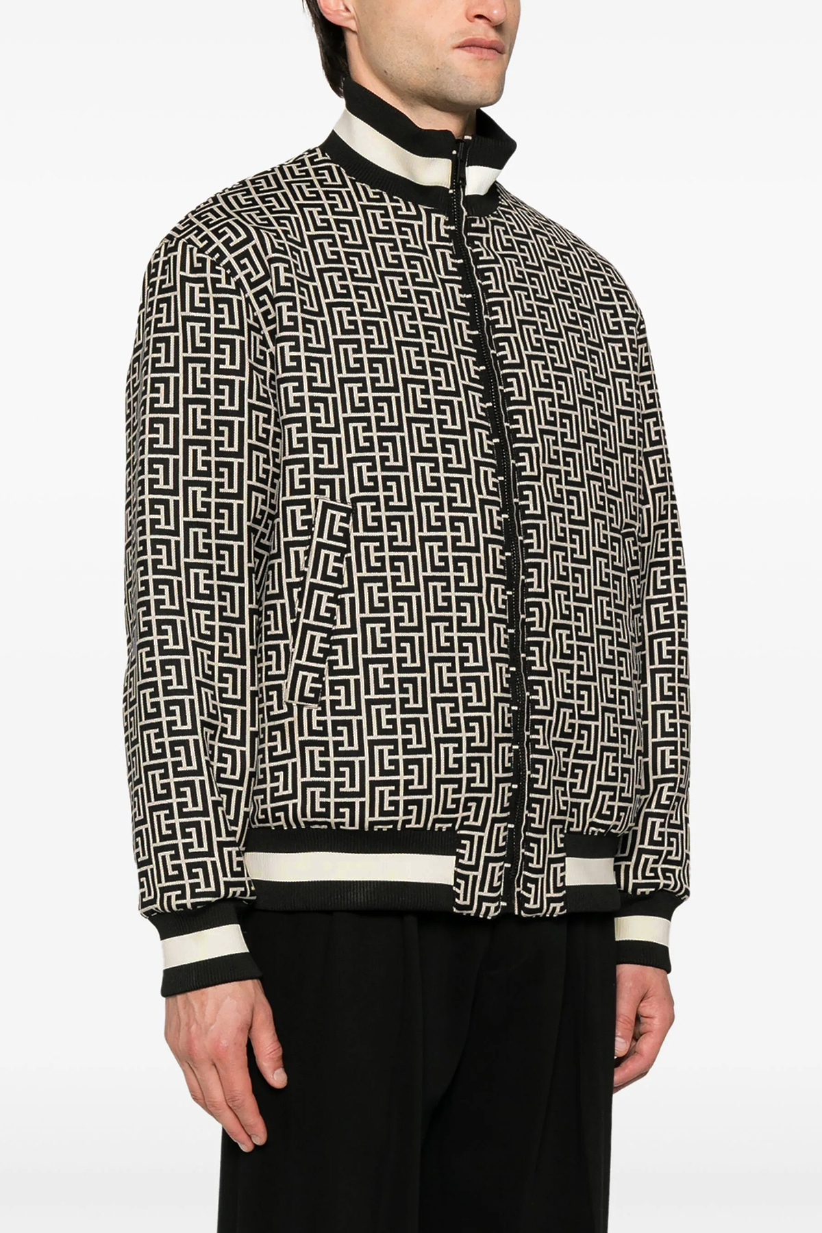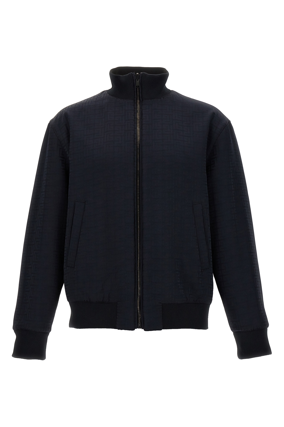 'Monogram' reversible jacquard bomber jacket with front zip closure, pockets, long cuffed sleeves.