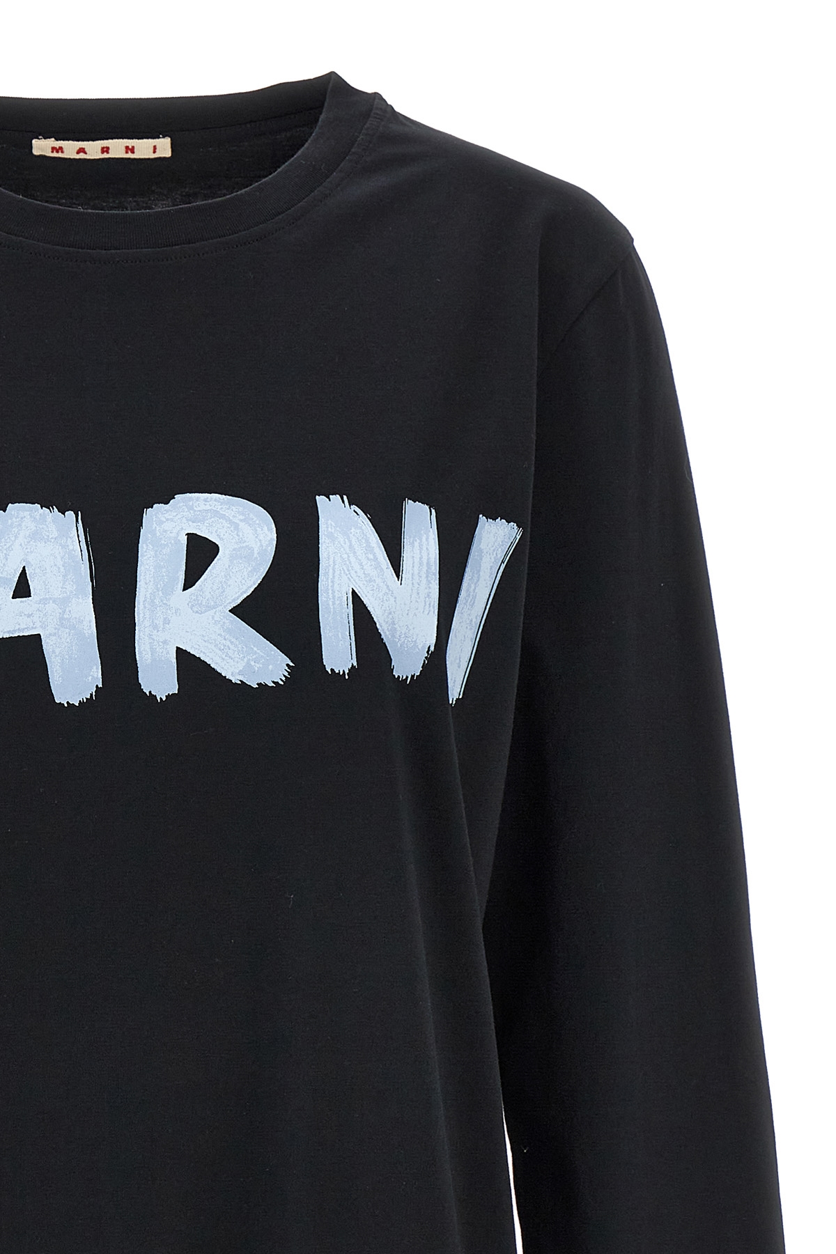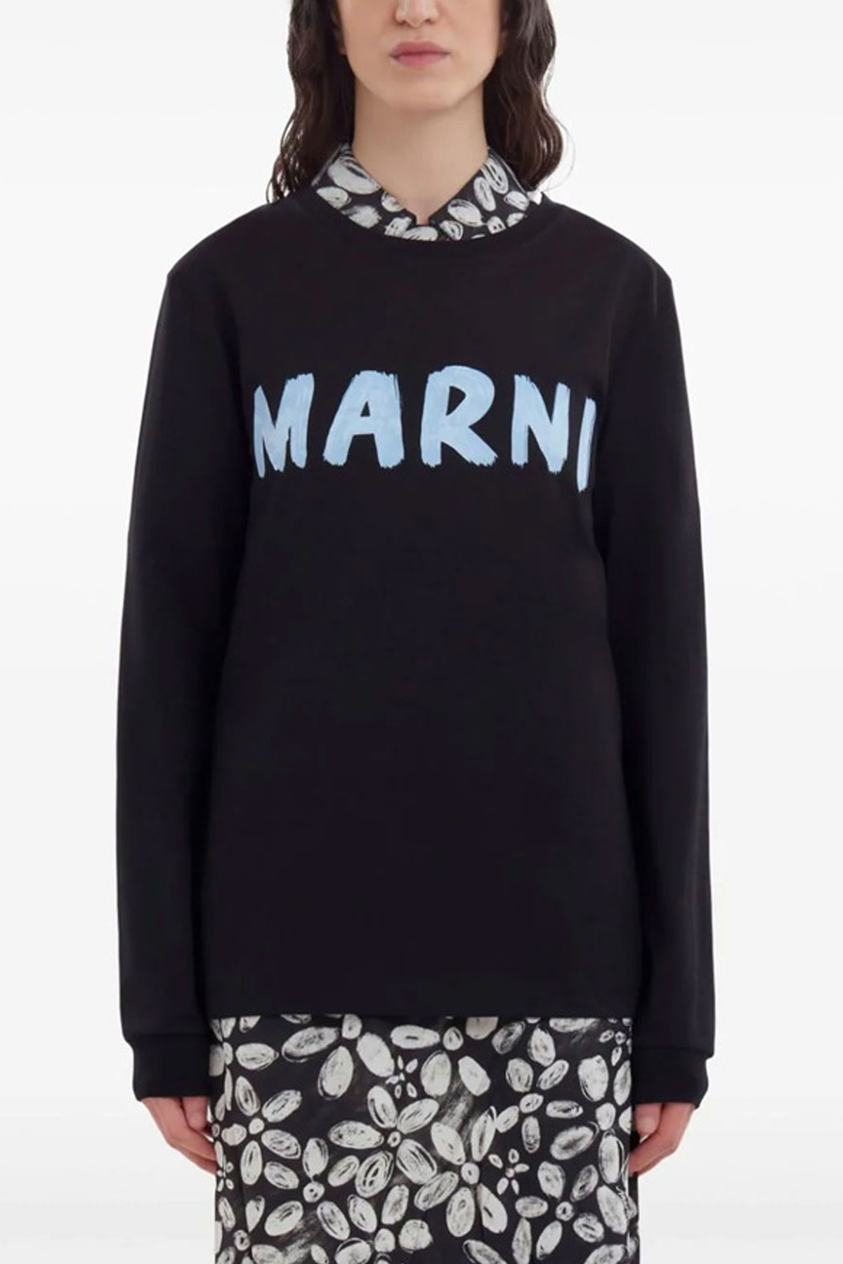 Cotton T-shirt with front logo print, crew neck, long cuffed sleeves.