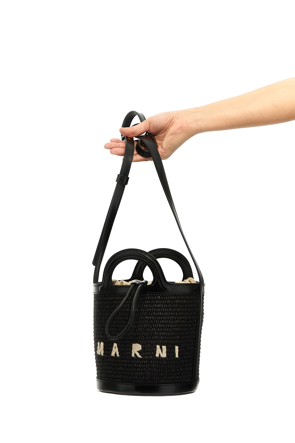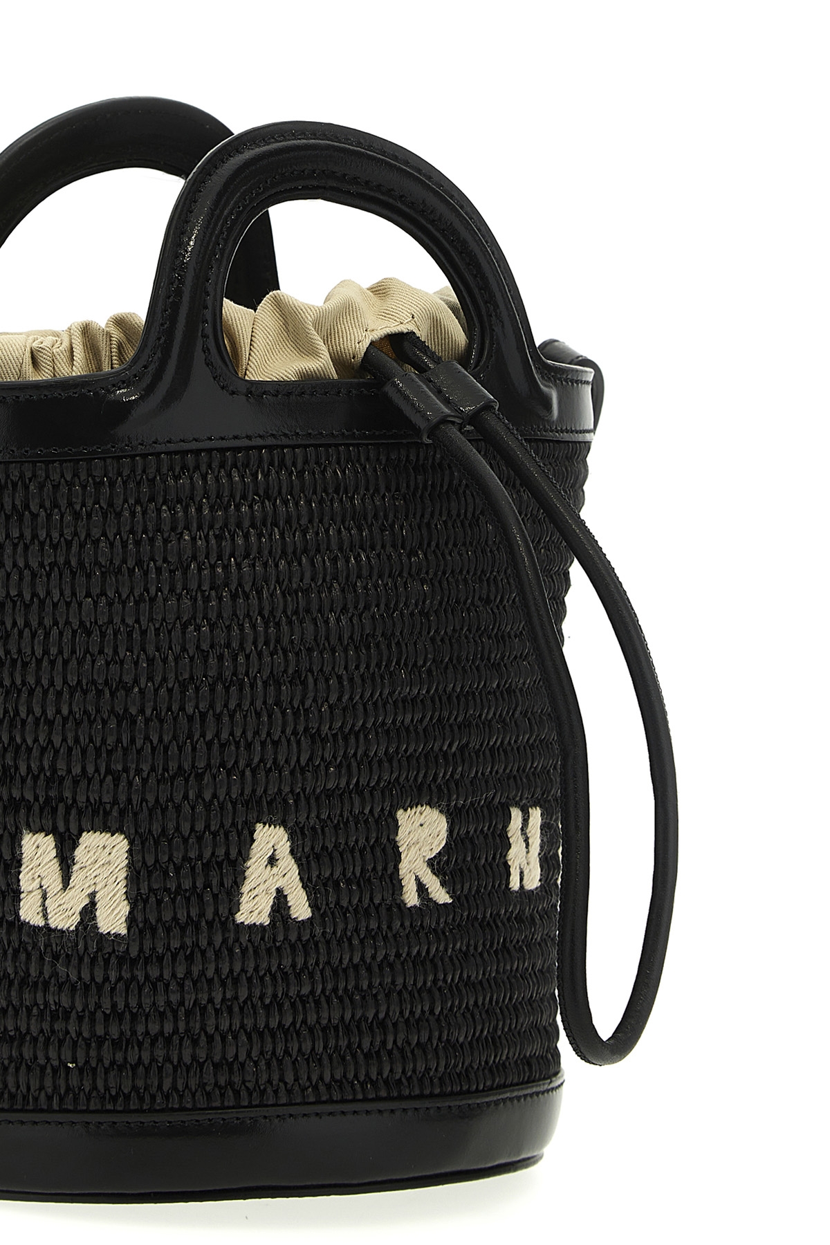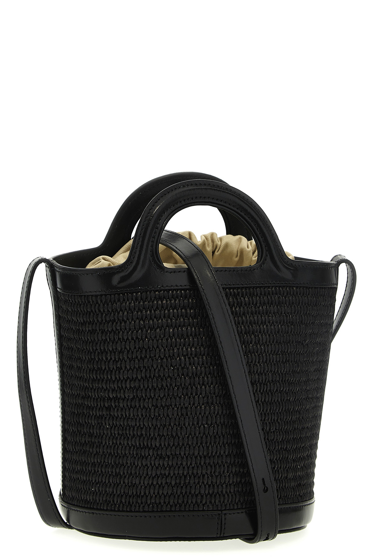 Small 'Tropicalia' crossbody bag made of raffia and leather, logo embroidery, inside drawstring pouch.