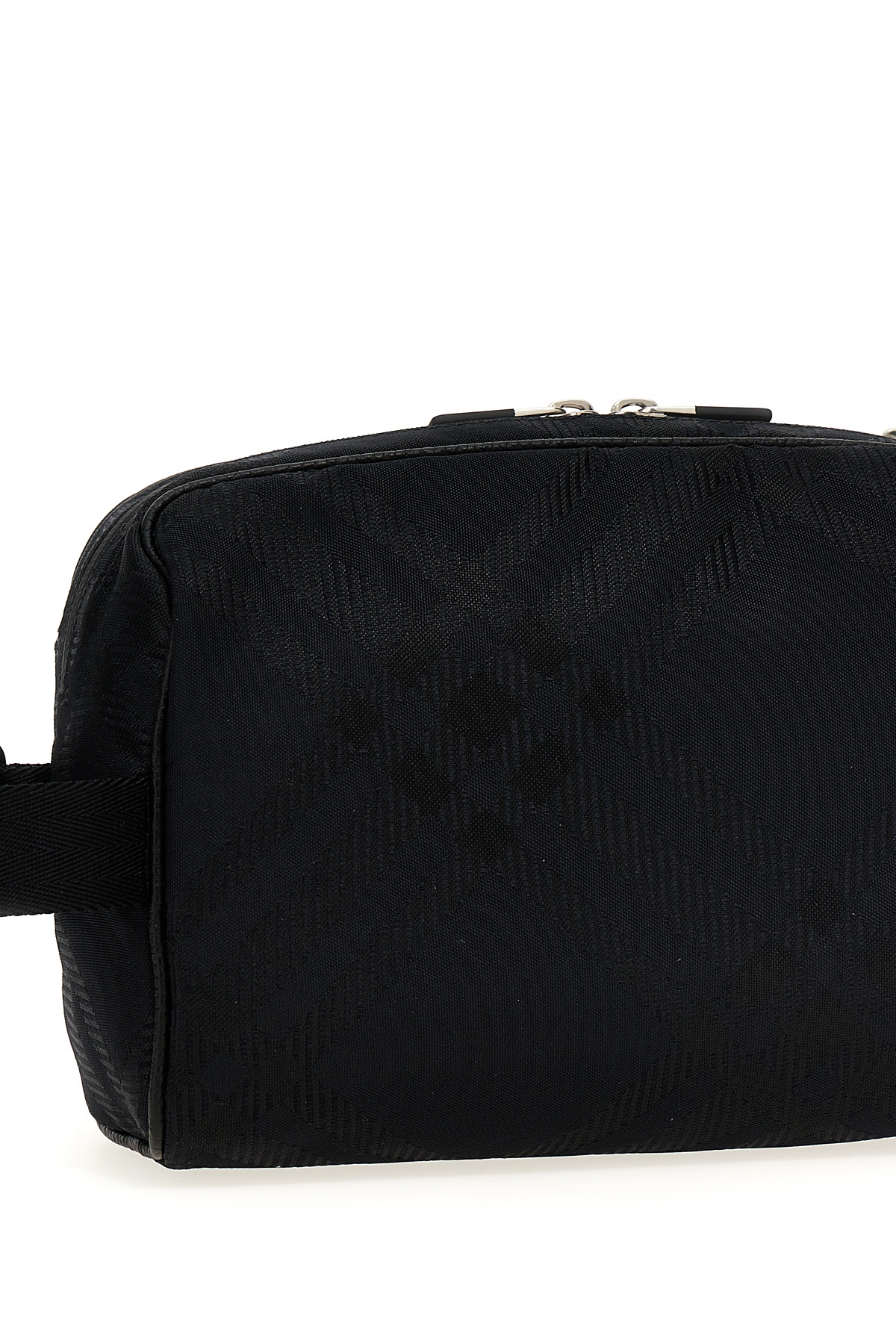 Nylon blend waist bag with jacquard 'Check' pattern, zip closure, adjustable shoulder strap.