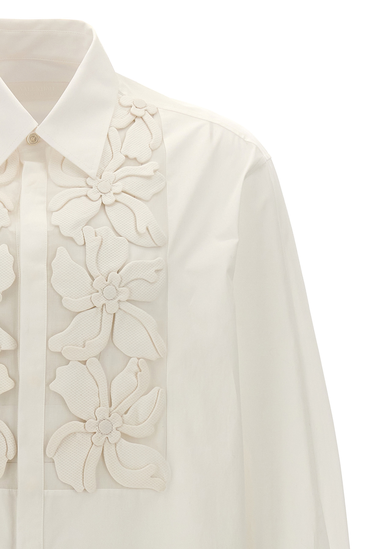 Cotton shirt with 'Hibiscus' embroidered plastron, button closure, long cuffed sleeves.