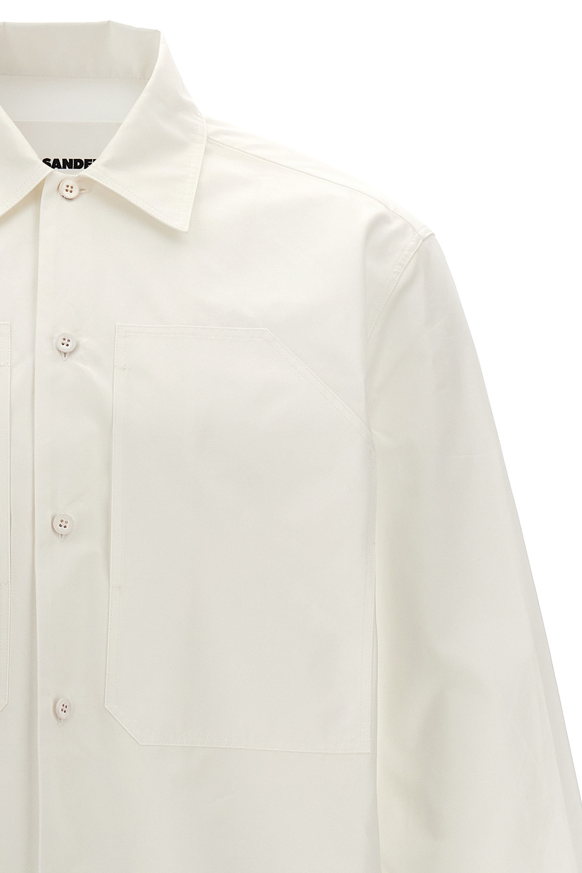 Cotton shirt with button closure, maxi front patch pockets, long cuffed sleeves.