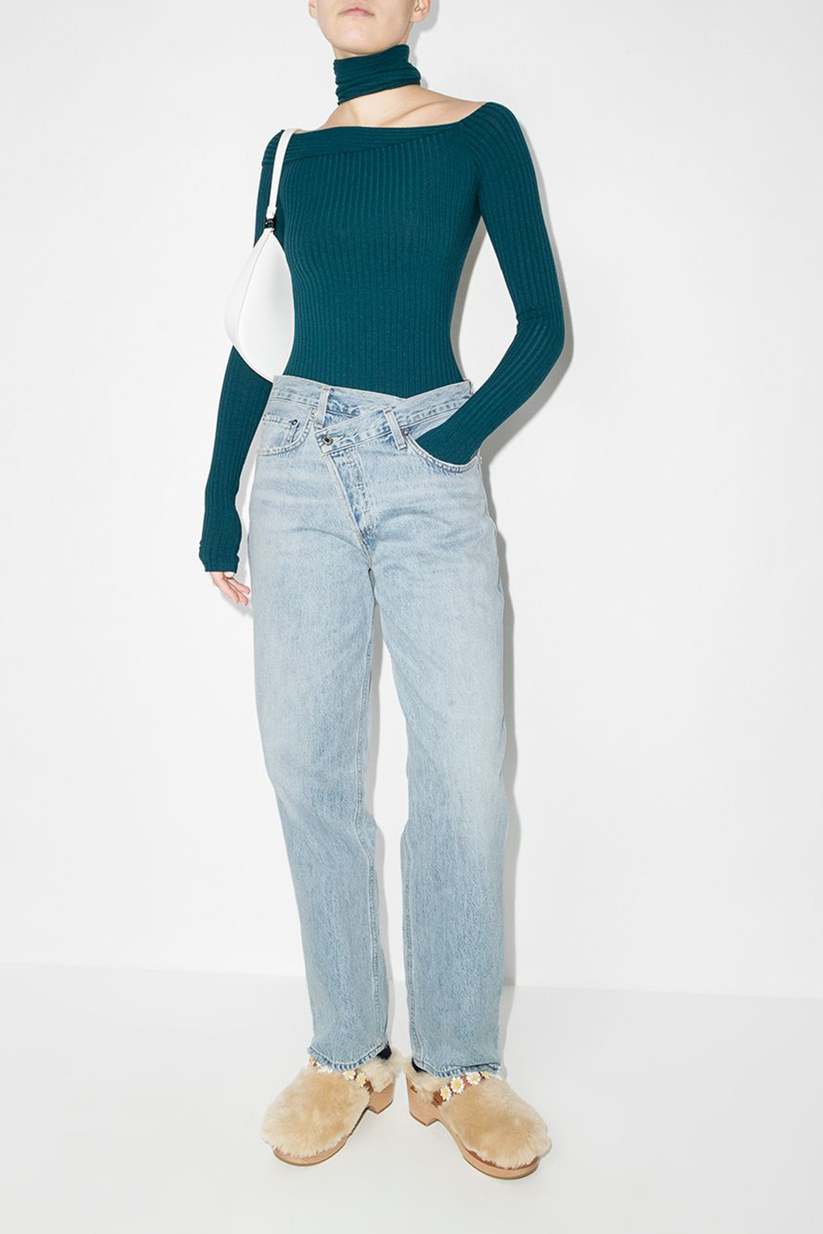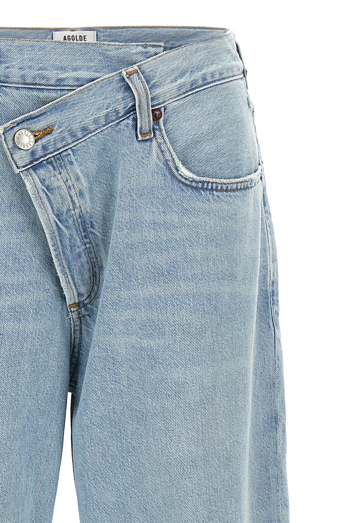 'Criss Cross' cotton denim jeans with used-effect details, asymmetric button closure, five pockets. SUSTAINABLE: This product is made of regenerated cotton.
