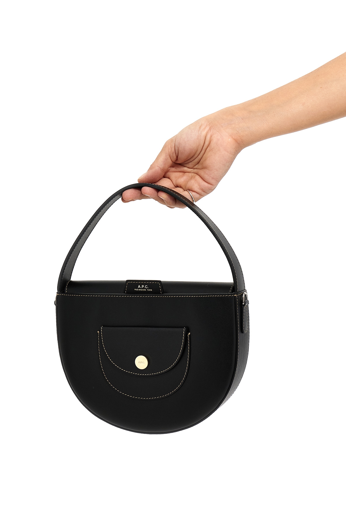 'Le Pocket small' leather handbag with magnetic closure, front pocket and removable shoulder strap.