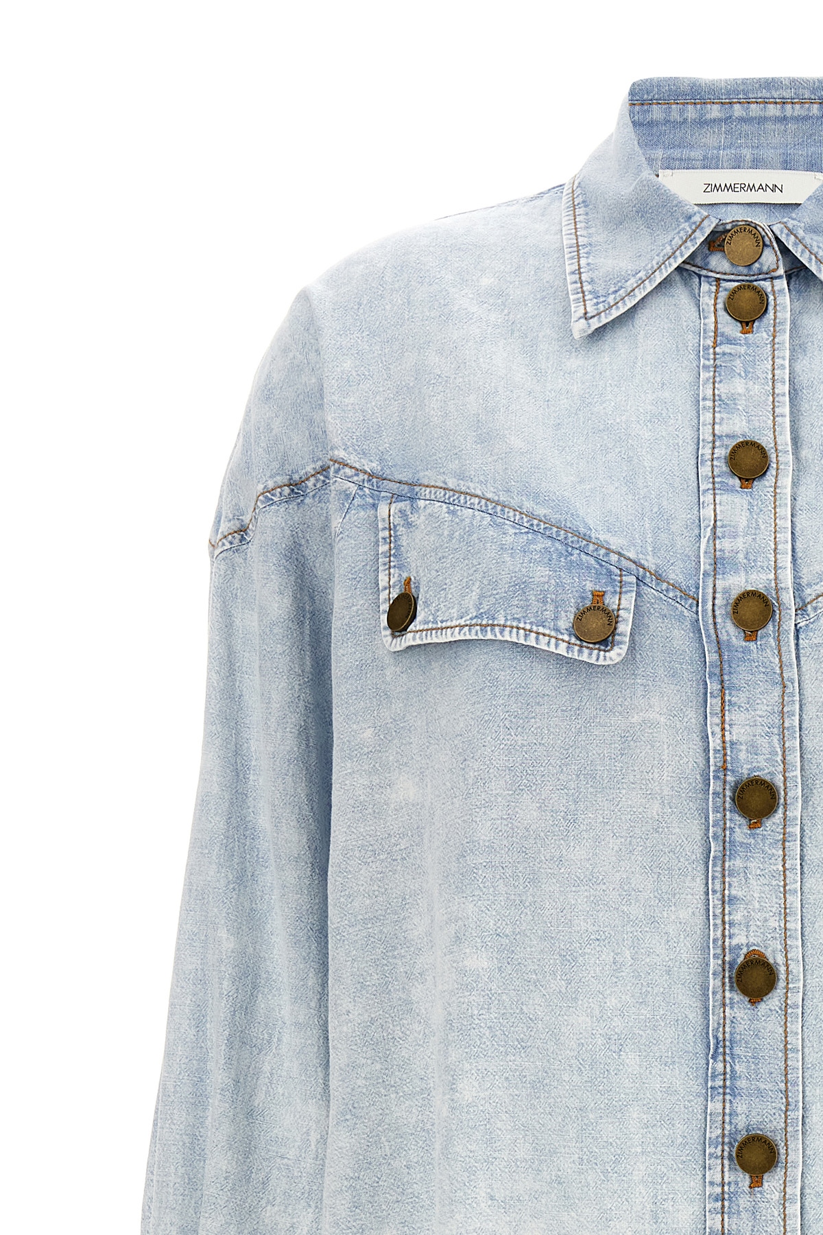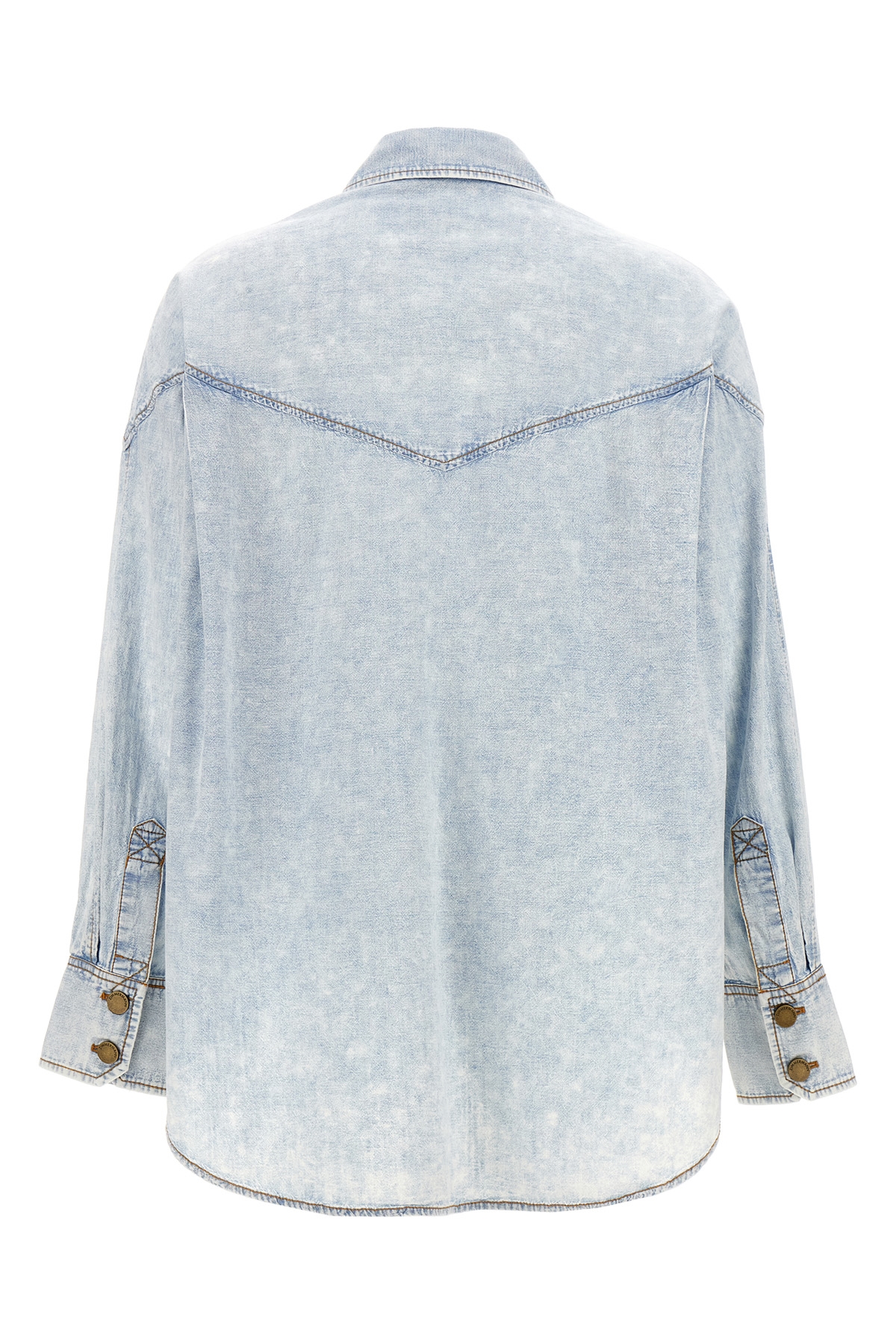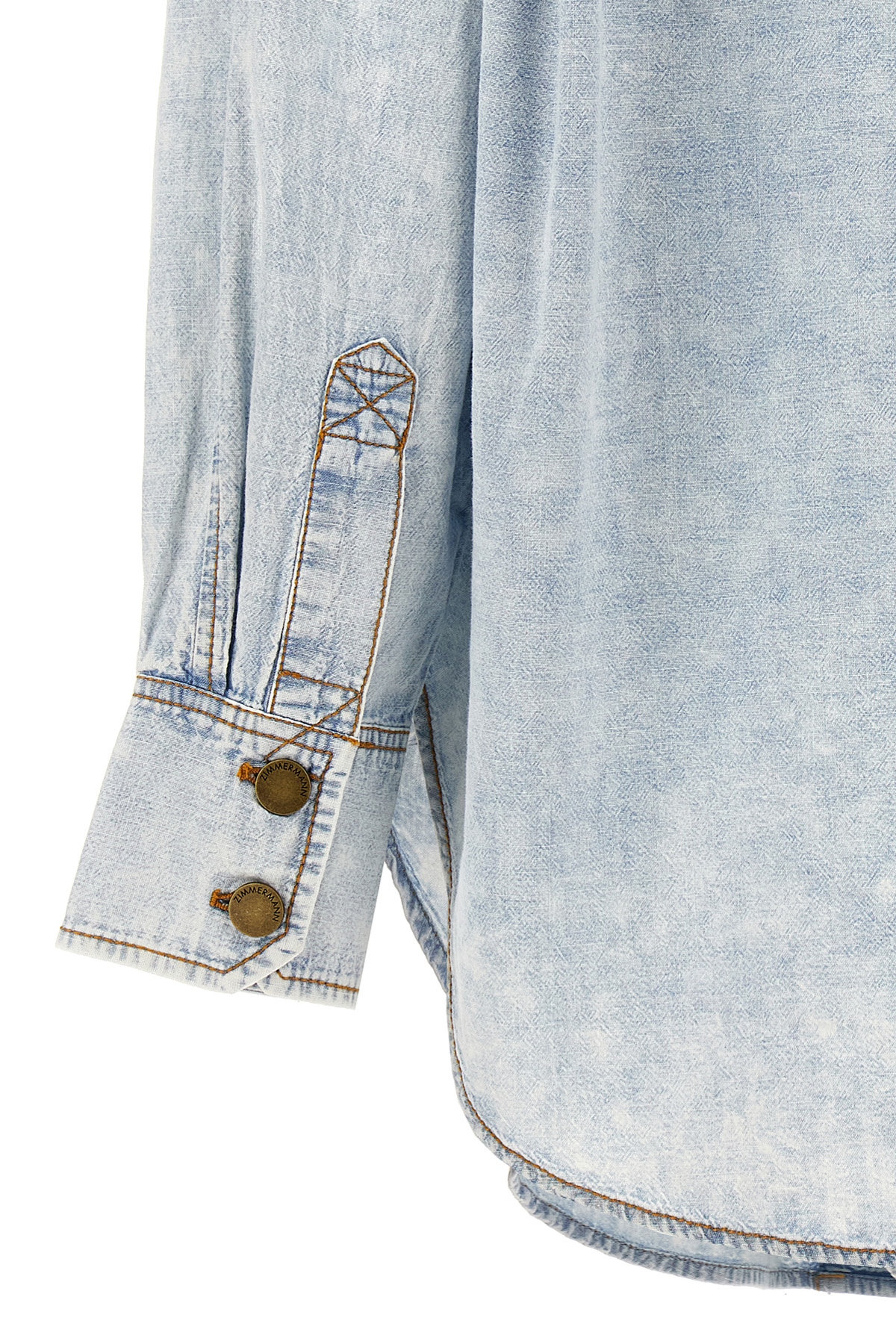 Cotton denim shirt with button closure, front pockets, long cuffed sleeves.