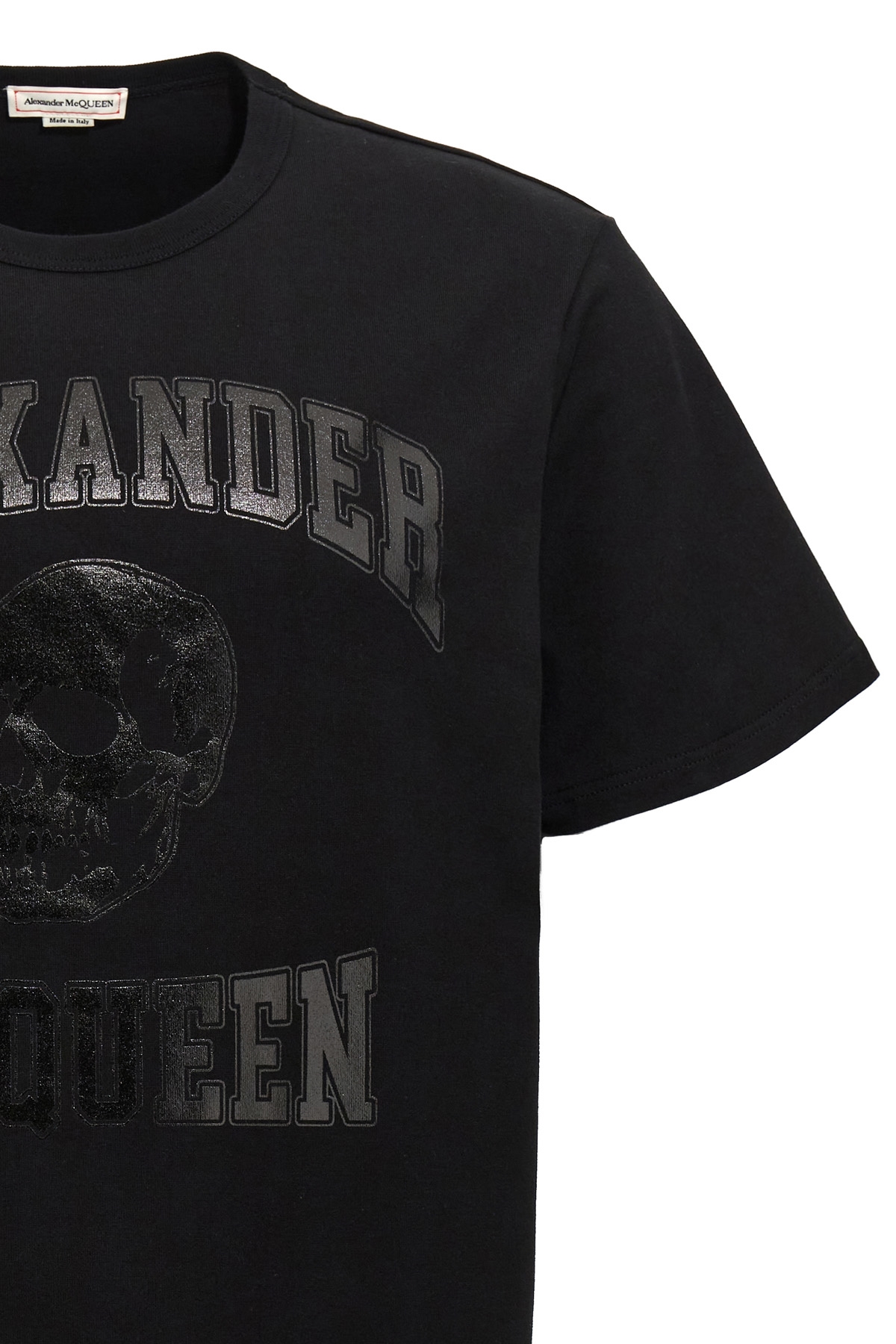 Cotton T-shirt with tone-on-tone logo print on the front, crew neck, and short sleeves.