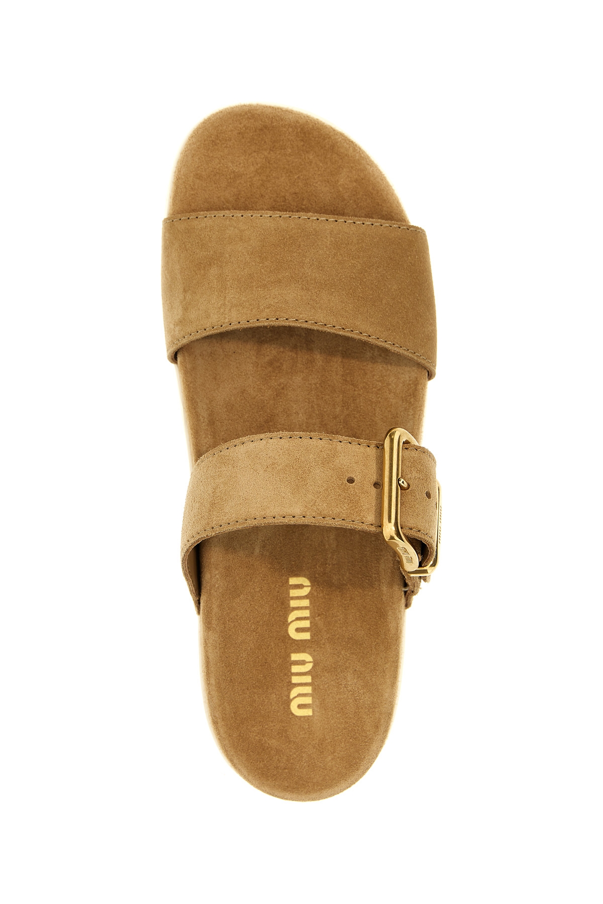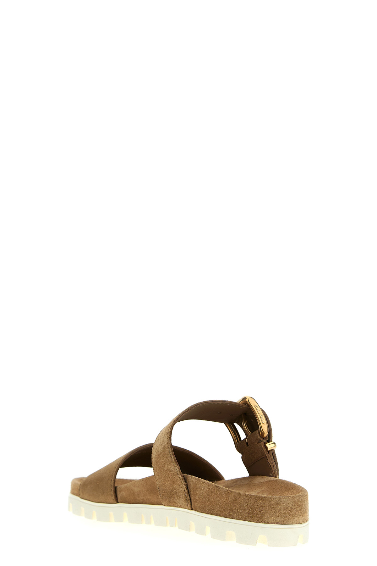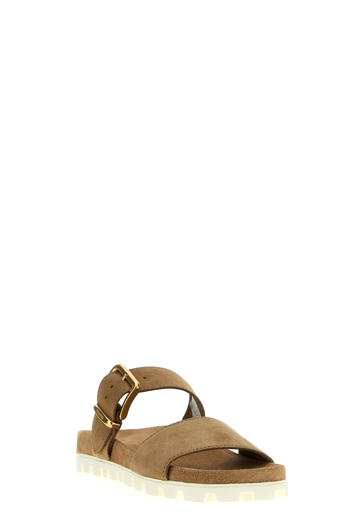 Suede sandals with adjustable band with buckle, rubber sole.