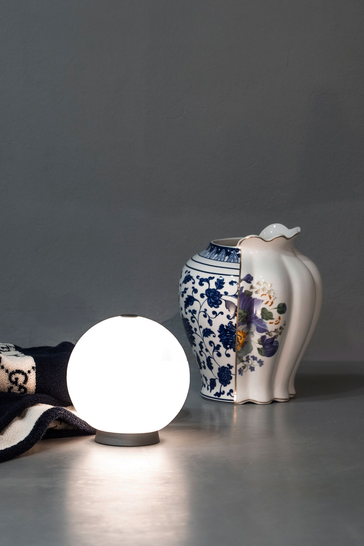 'Balloton Luce' Murano table lamp, sandblasted and blown, rechargeable and dimmable.