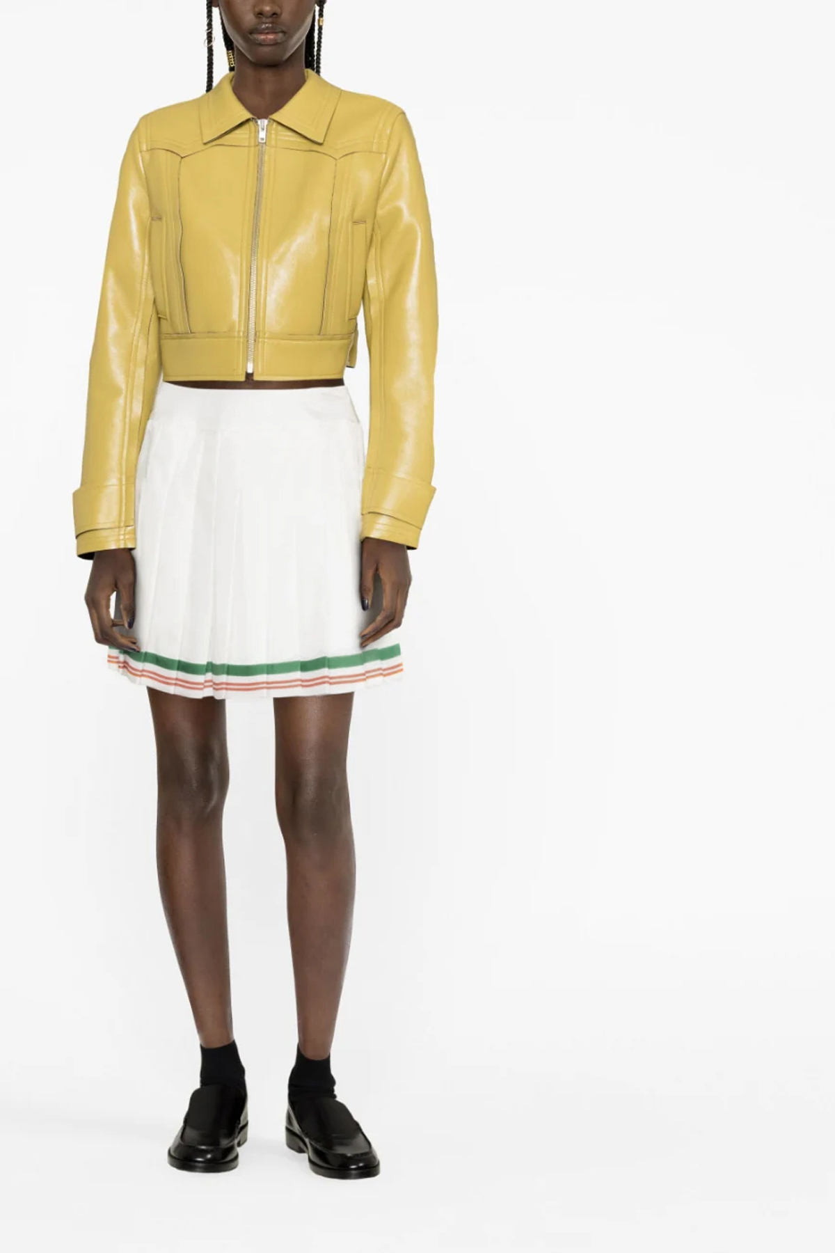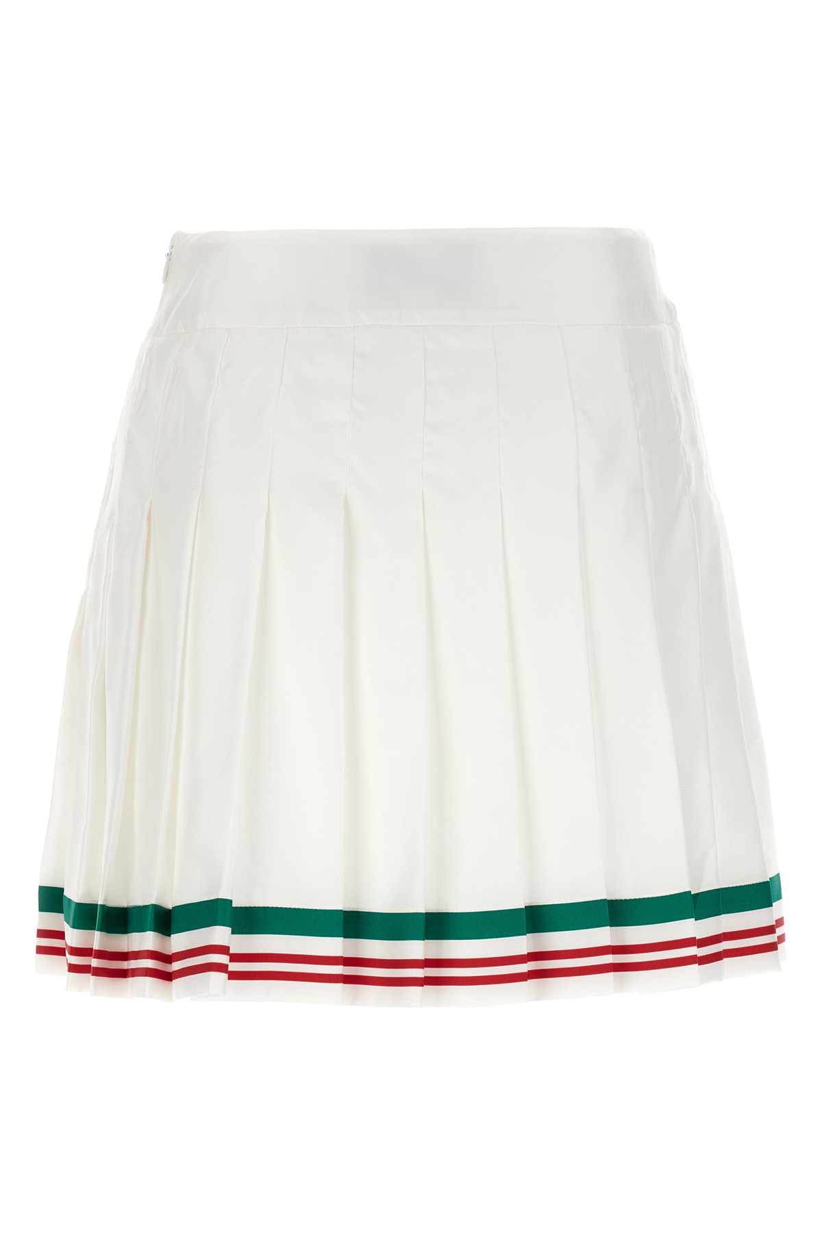 'Casa way' pleated silk skirt with band print, invisible zip closure.