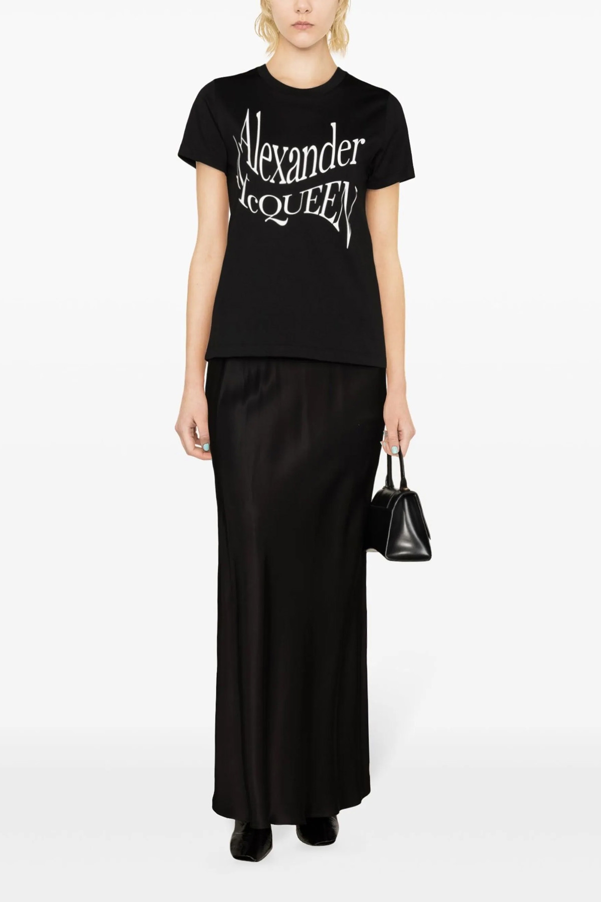 'Cut and Sew' cotton crew neck T-shirt with front logo print and short sleeves.