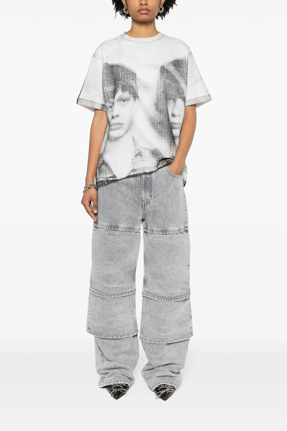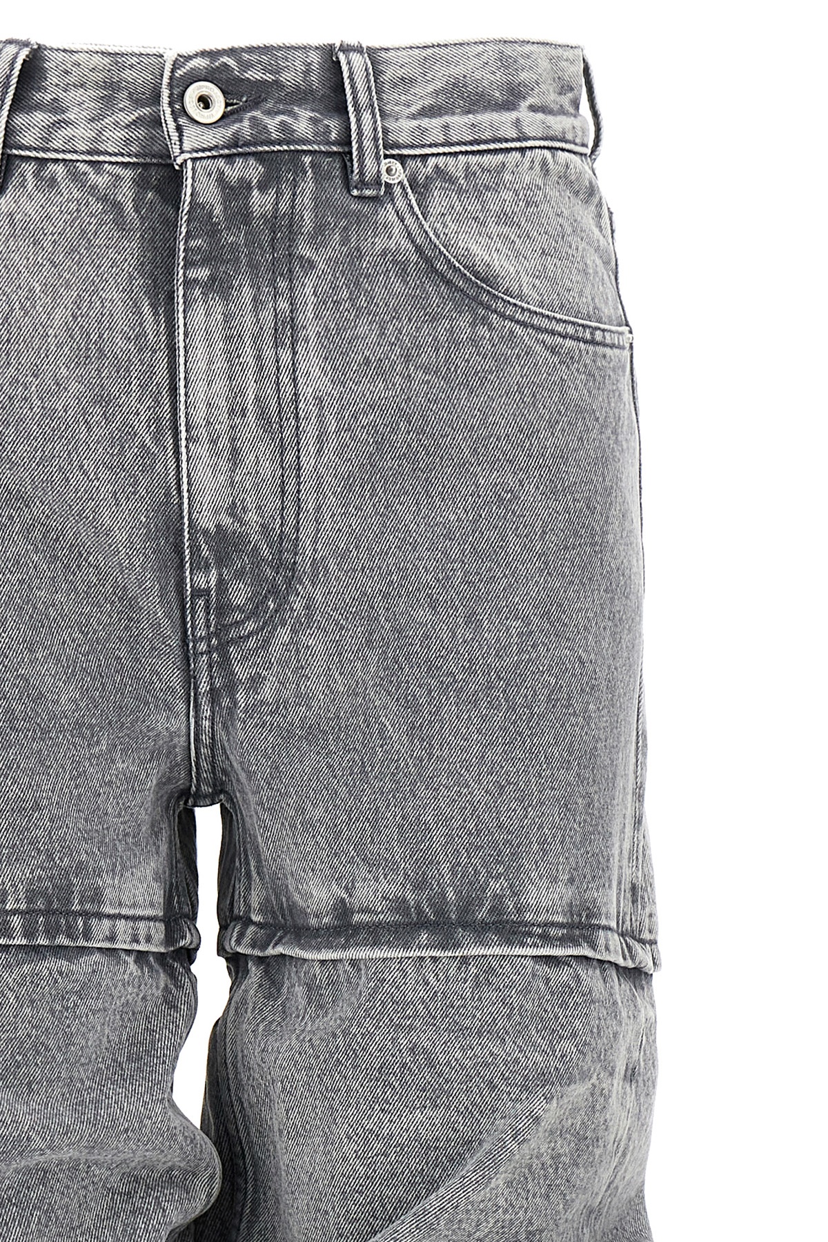 'Multi Cuff' cotton denim jeans with multi-layer effect leg, zip and button fly, five pockets, leather logo tag.