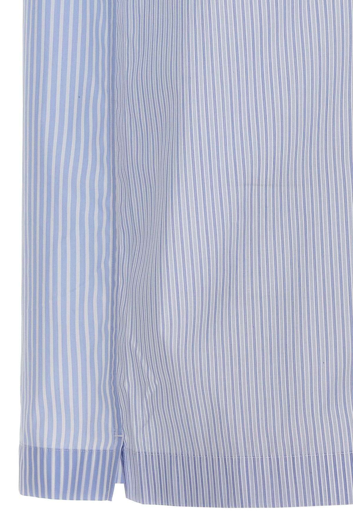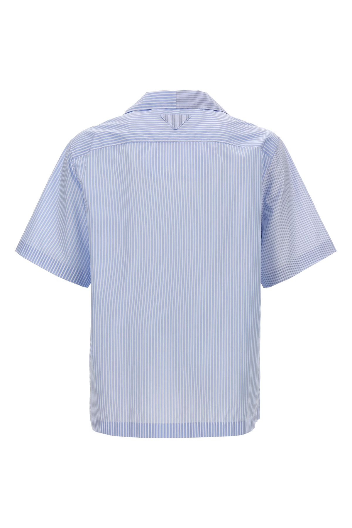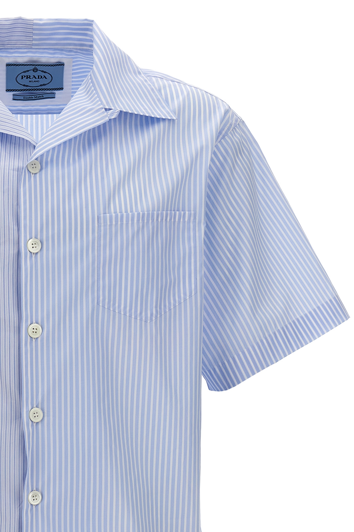 'Double Match' striped cotton poplin shirt, front pocket, button closure, short sleeves.