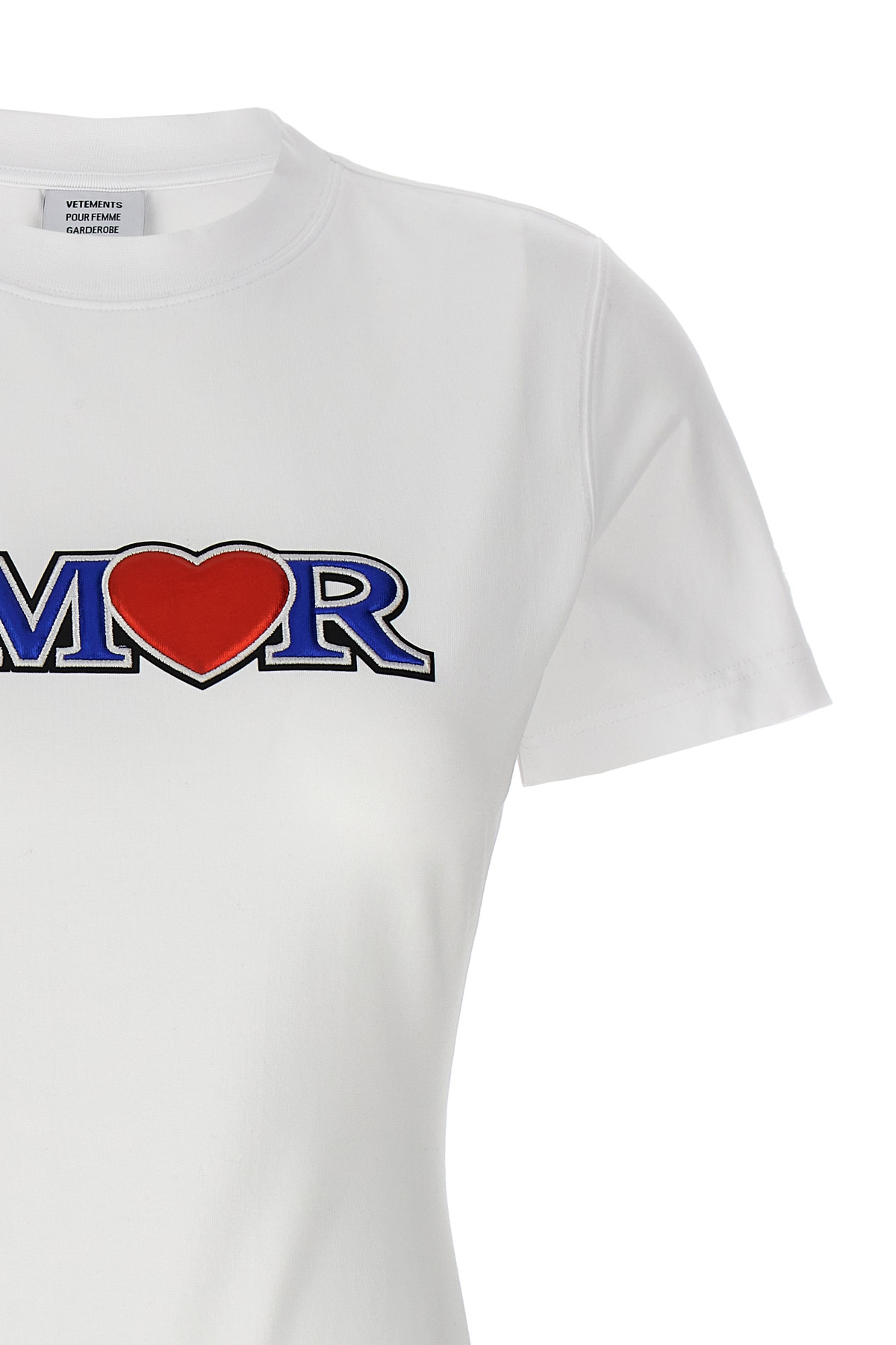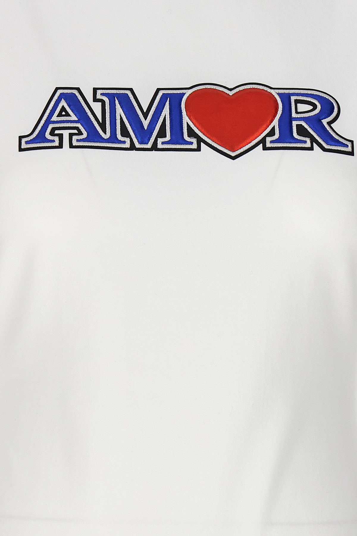 'Amor' stretch cotton crew neck T-shirt with front embroidery, short sleeves.