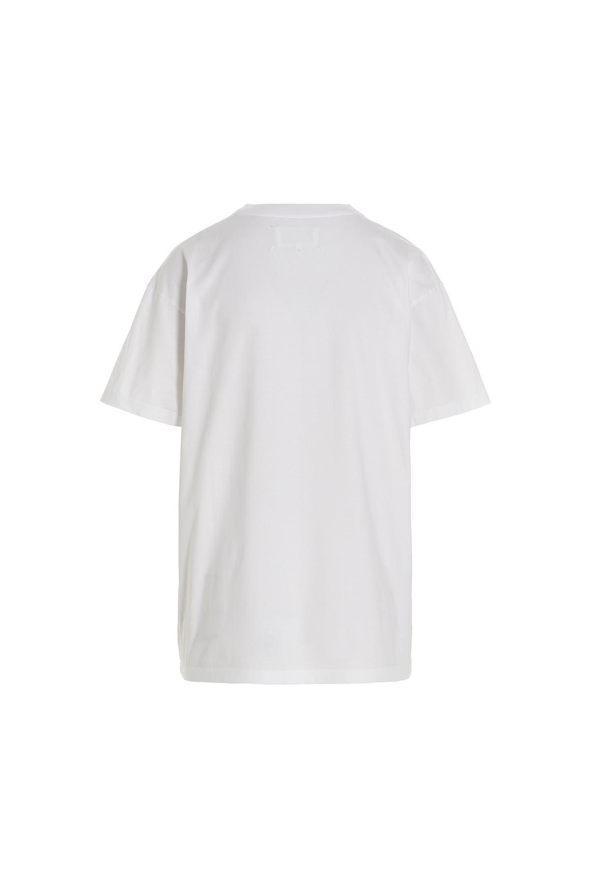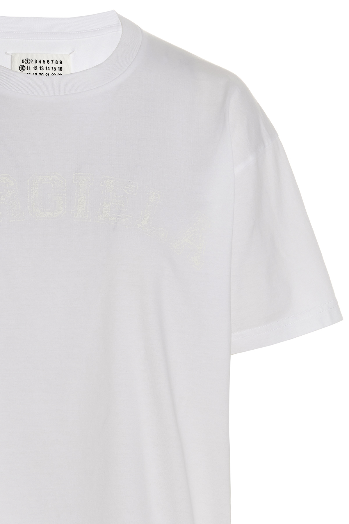 Cotton, crewneck t-shirt with front tone-on-tone logo print, and short sleeves.