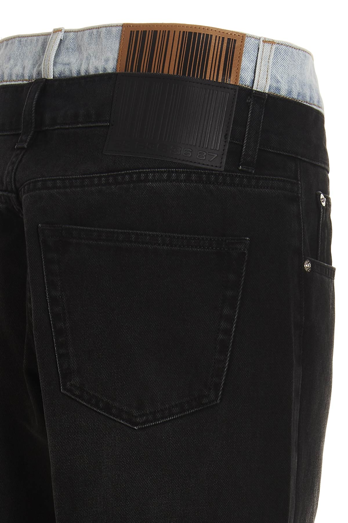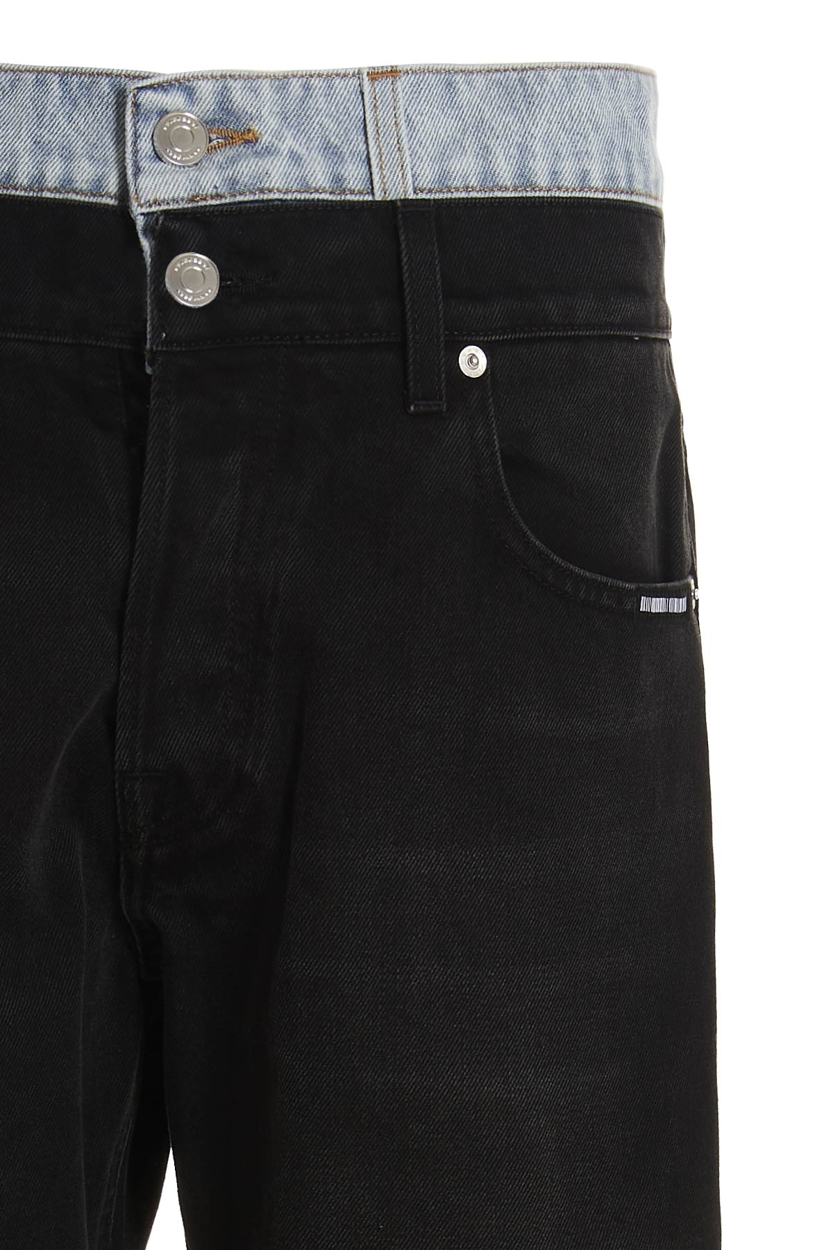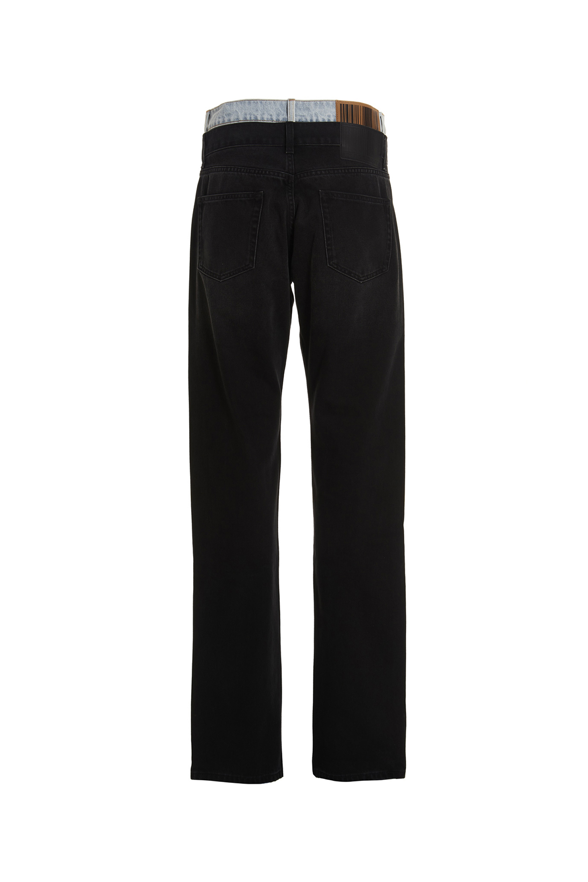 Double waisted' denim jeans with contrast double waist and a button closure.