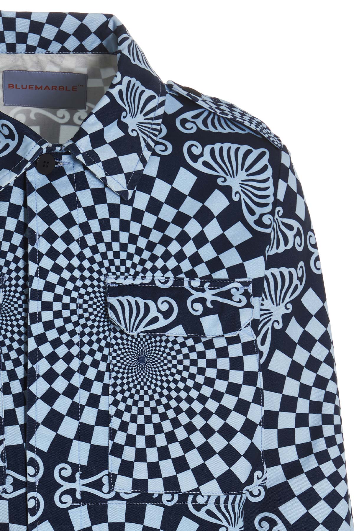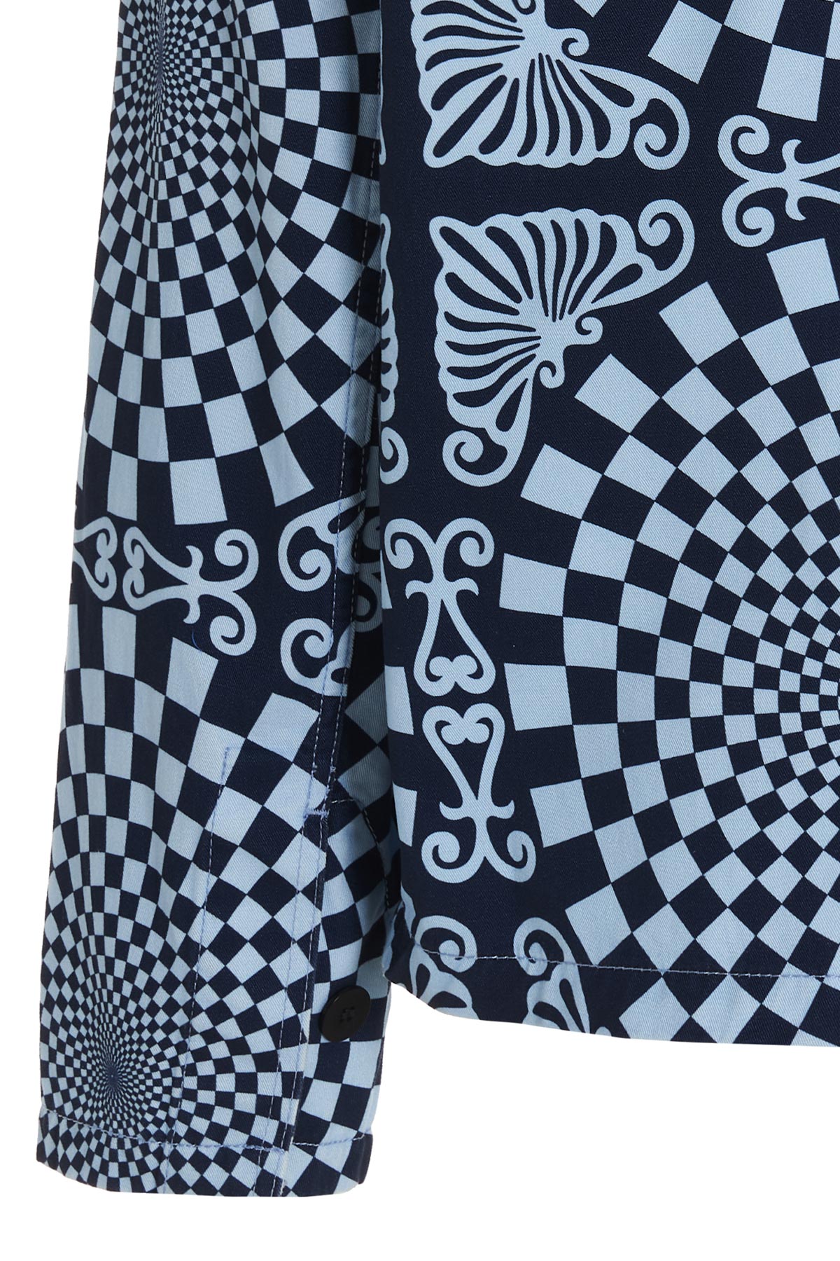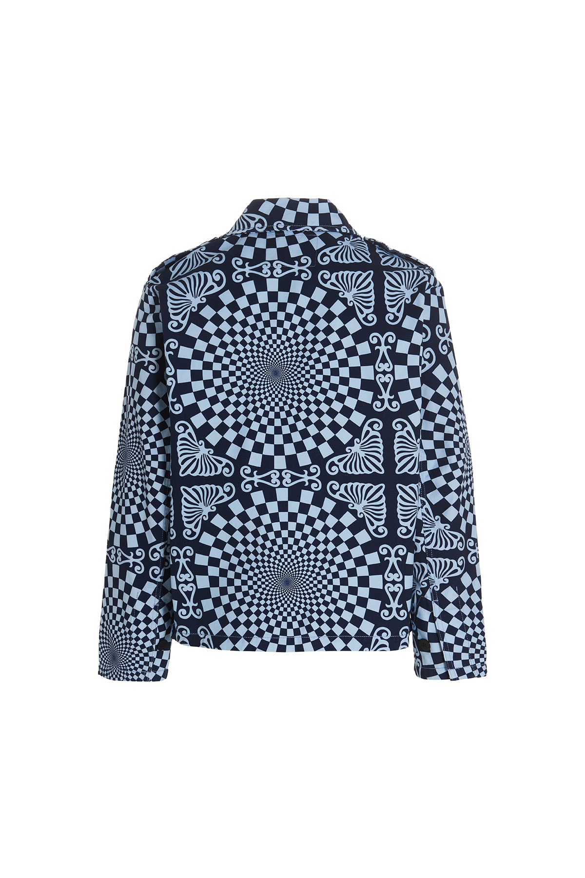 Folk Checkerboard' cotton jacket with all over print, front pockets, a button closure, and long sleeves.