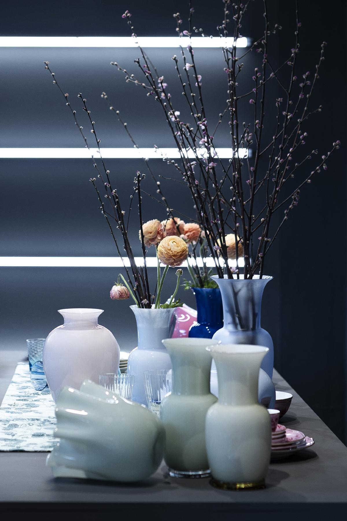The evocative reworking of the Opalini technique of the fifteenth century makes it unique in color. The genius of Fulvio Bianconi makes it inimitable in form, shaped like skirts moved by the wind. So much so that of every Opalini handkerchief there is not one identical all over the world.