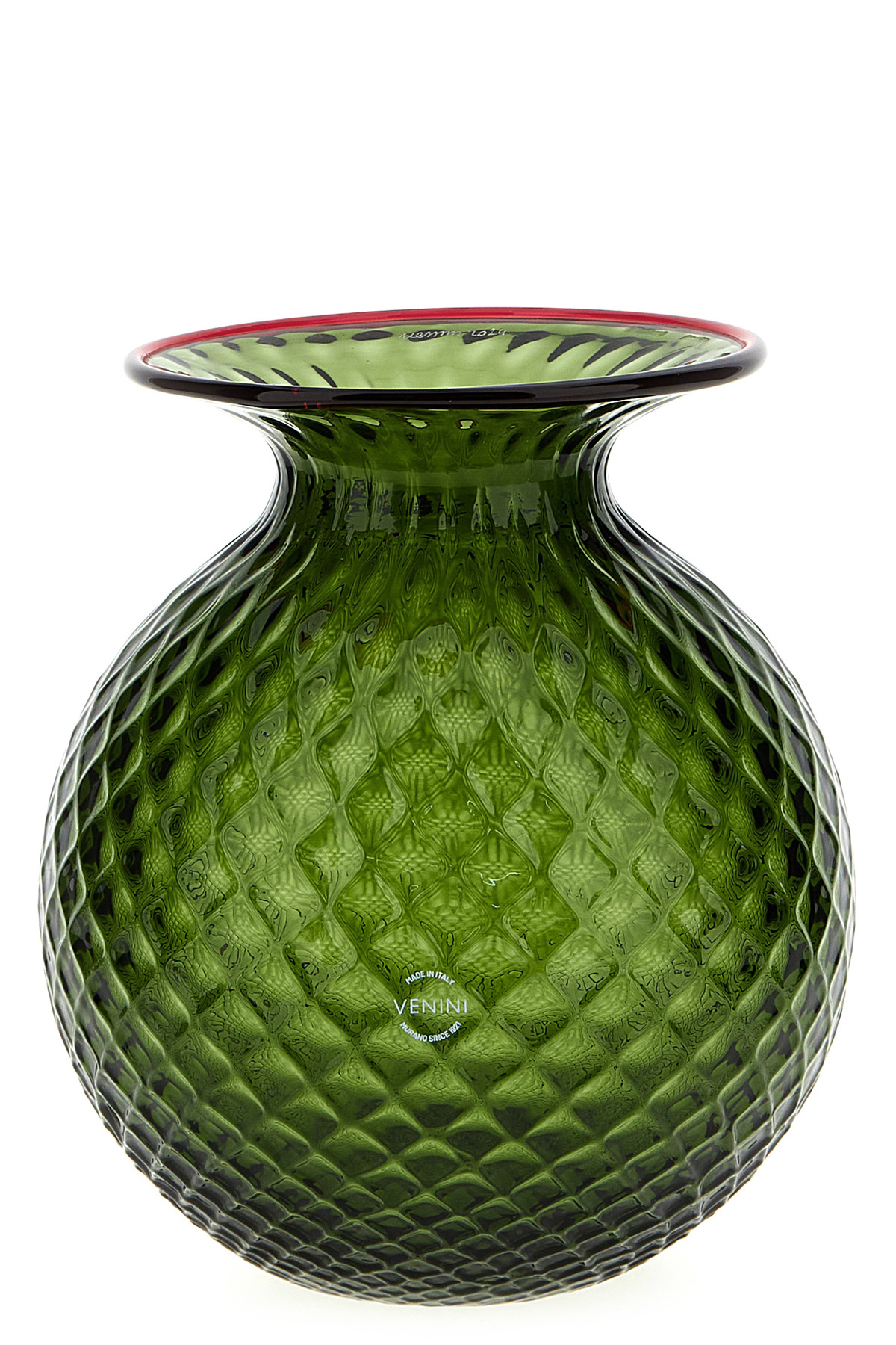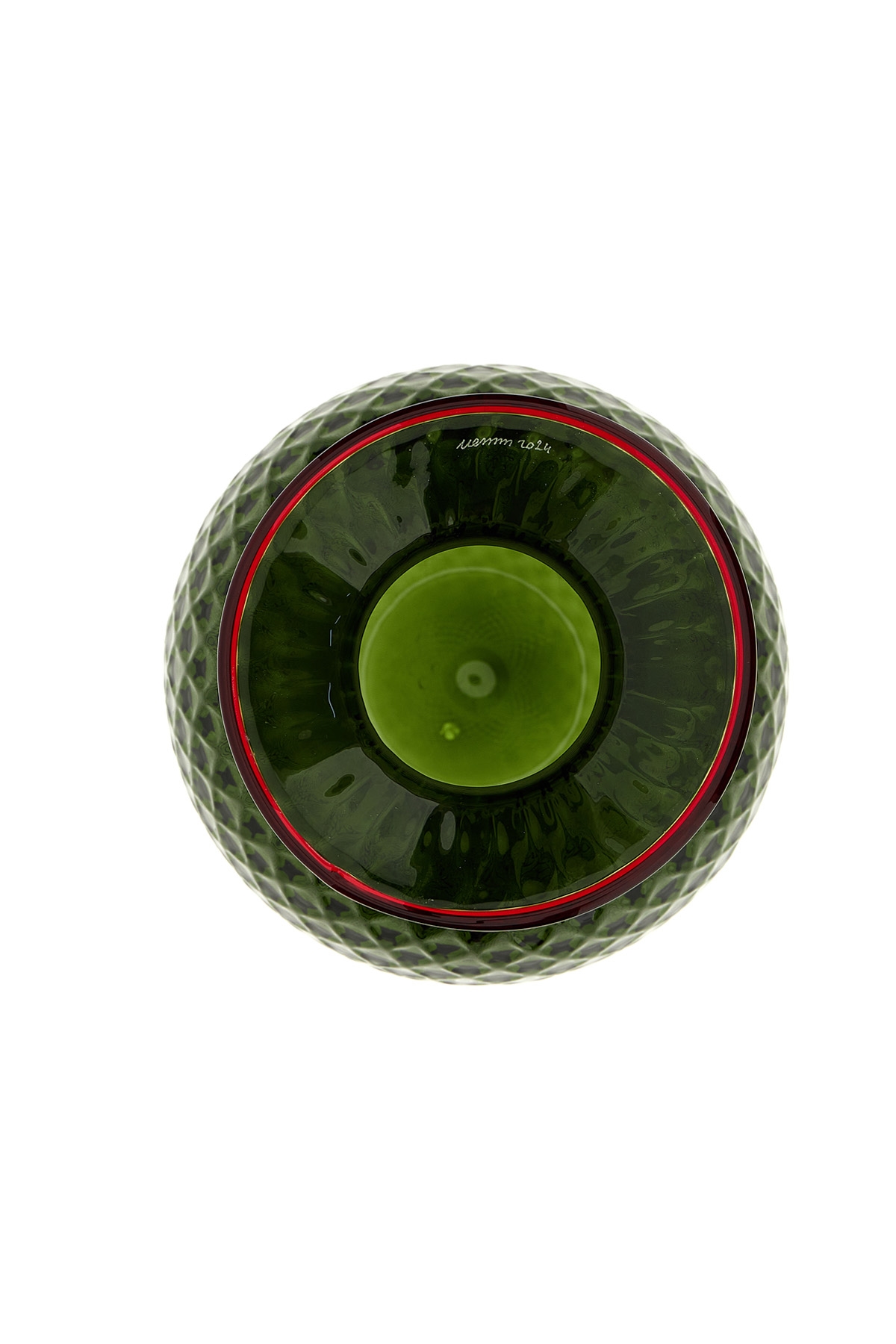 It looks soft, yet it is glass. The optical illusion of the VENINI Monofiori of 1970 is in its name: Balloton, the unique workmanship that recreates the matelasse effect on the surface. The work is handmade, blown into the characteristic metal mold and finished in the thin neck with a hot colored thread, which varies in color.FO310039000F0OGVERDEMELA_2024-03-19T08-27-46.586Z.jpg FO310039000F0OGVERDEMELA_03_P_2024-03-19T08-27-46.946Z.jpg FO310039000F0OGVERDEMELA_07_P_2024-03-19T08-27-47.43Z.jpg