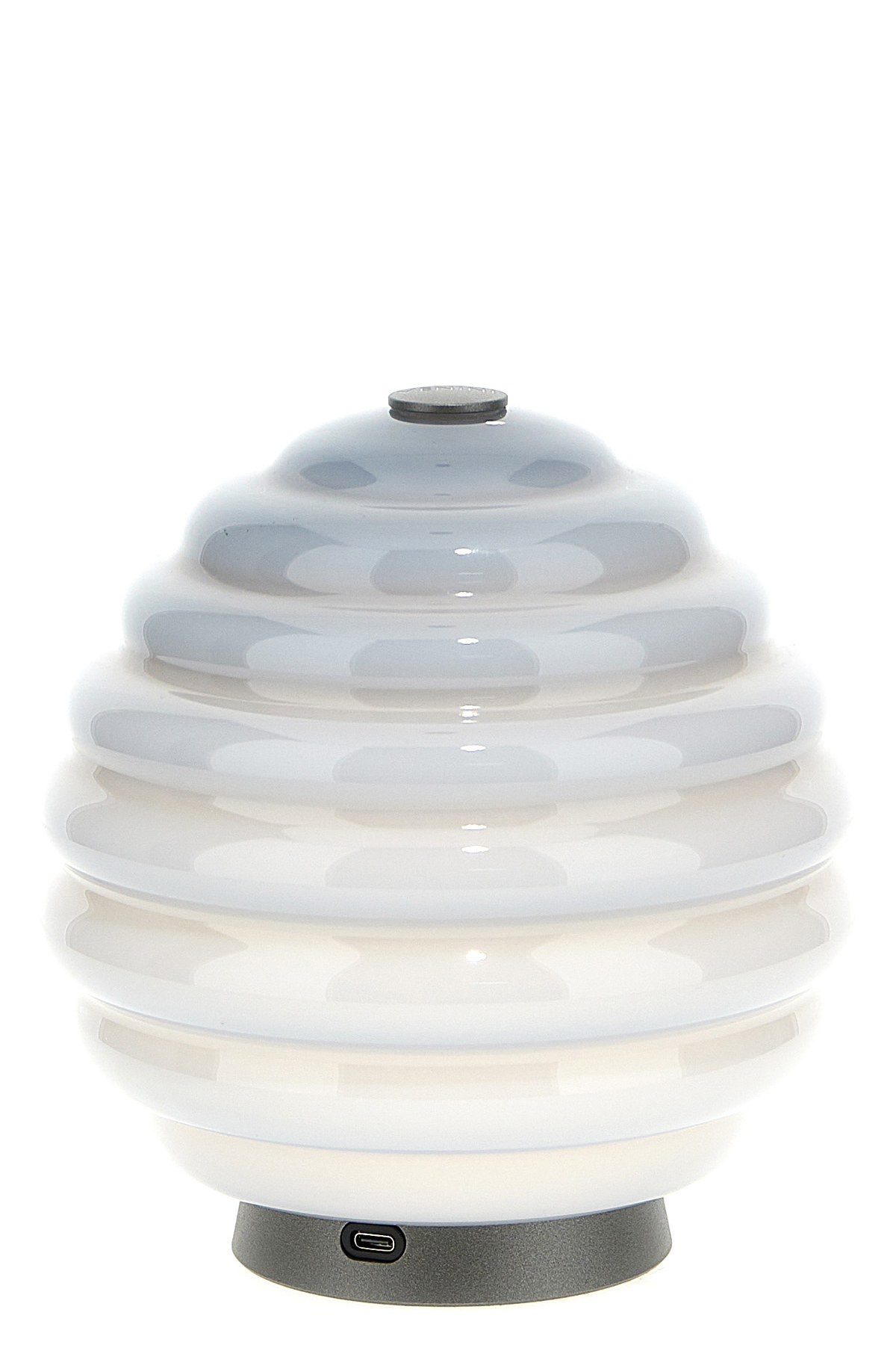 The historic vase designed in 1930 by Napoleone Martinuzzi is renewed and becomes a table lamp with rechargeable battery, combining the elegance of the past with the comfort of the present. This fascinating lamp transforms a historic glass vase into a unique light source. With a timeless design, Deco enchants with its intrinsic beauty. Every detail, with fluid and concentric lines, tells a story of bygone eras. However, the real magic begins when this work comes to life like a lamp. The rechargeable battery-operated table lamp also offers a wide range of lighting options. You can adjust the light intensity according to your needs and create the perfect atmosphere for any occasion. Experience the perfect balance between aesthetics and functionality, giving a touch of historic elegance to every corner of your home.