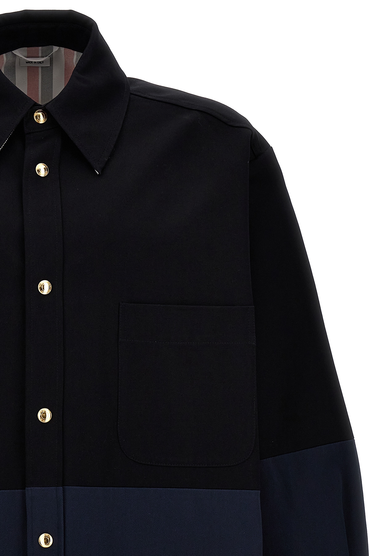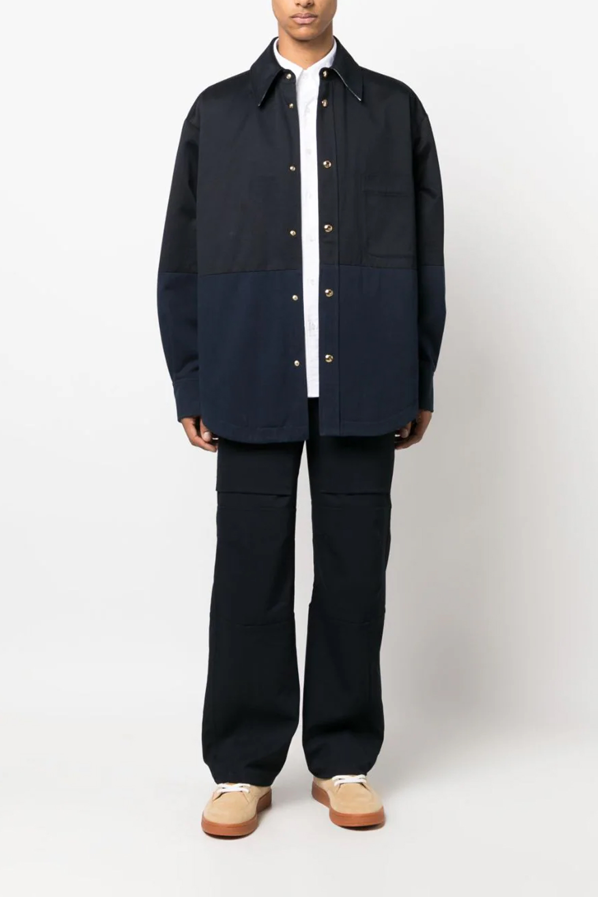 'Combo Snap' canvas overshirt, pockets, button closure, long cuffed sleeves.