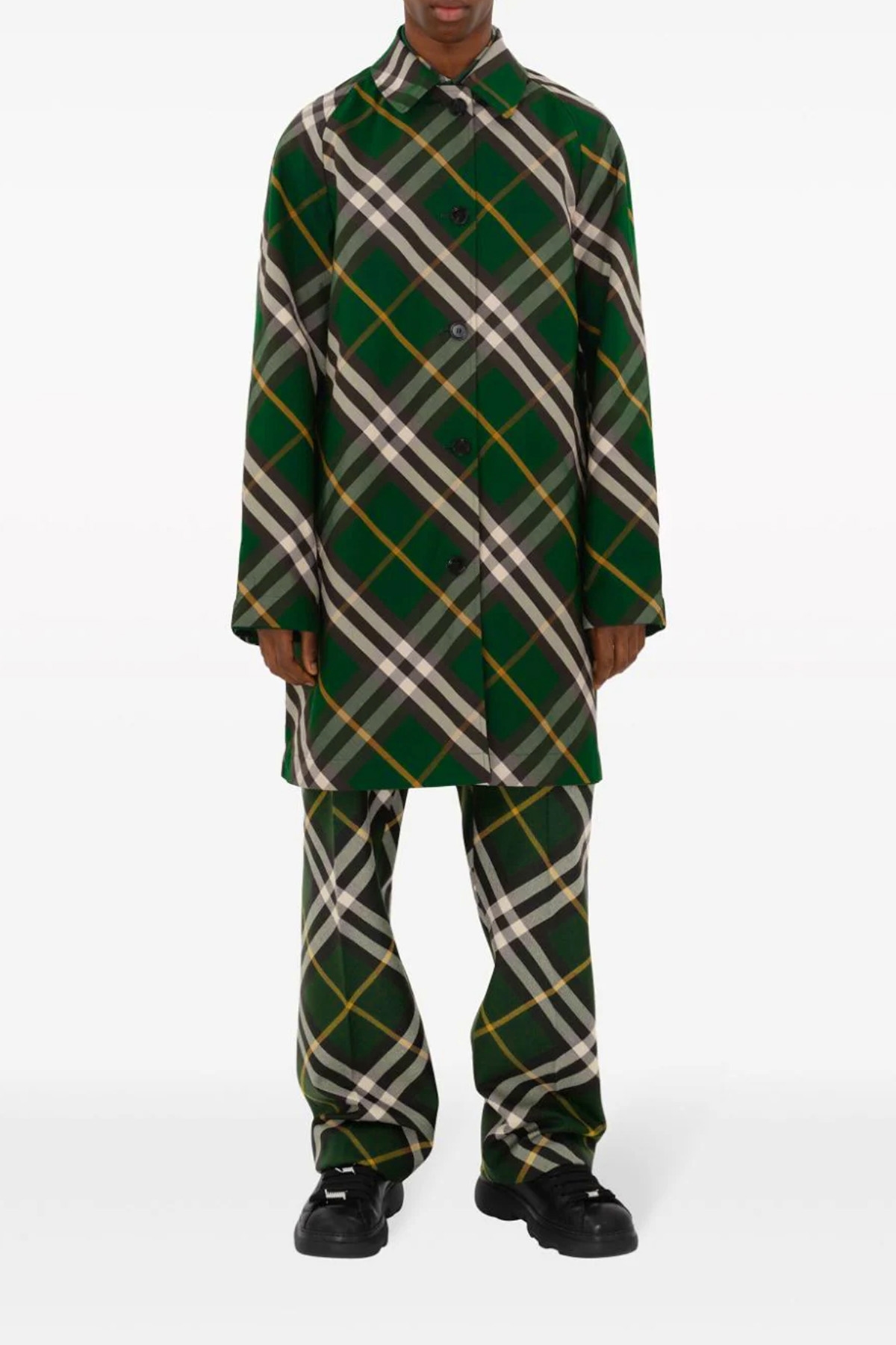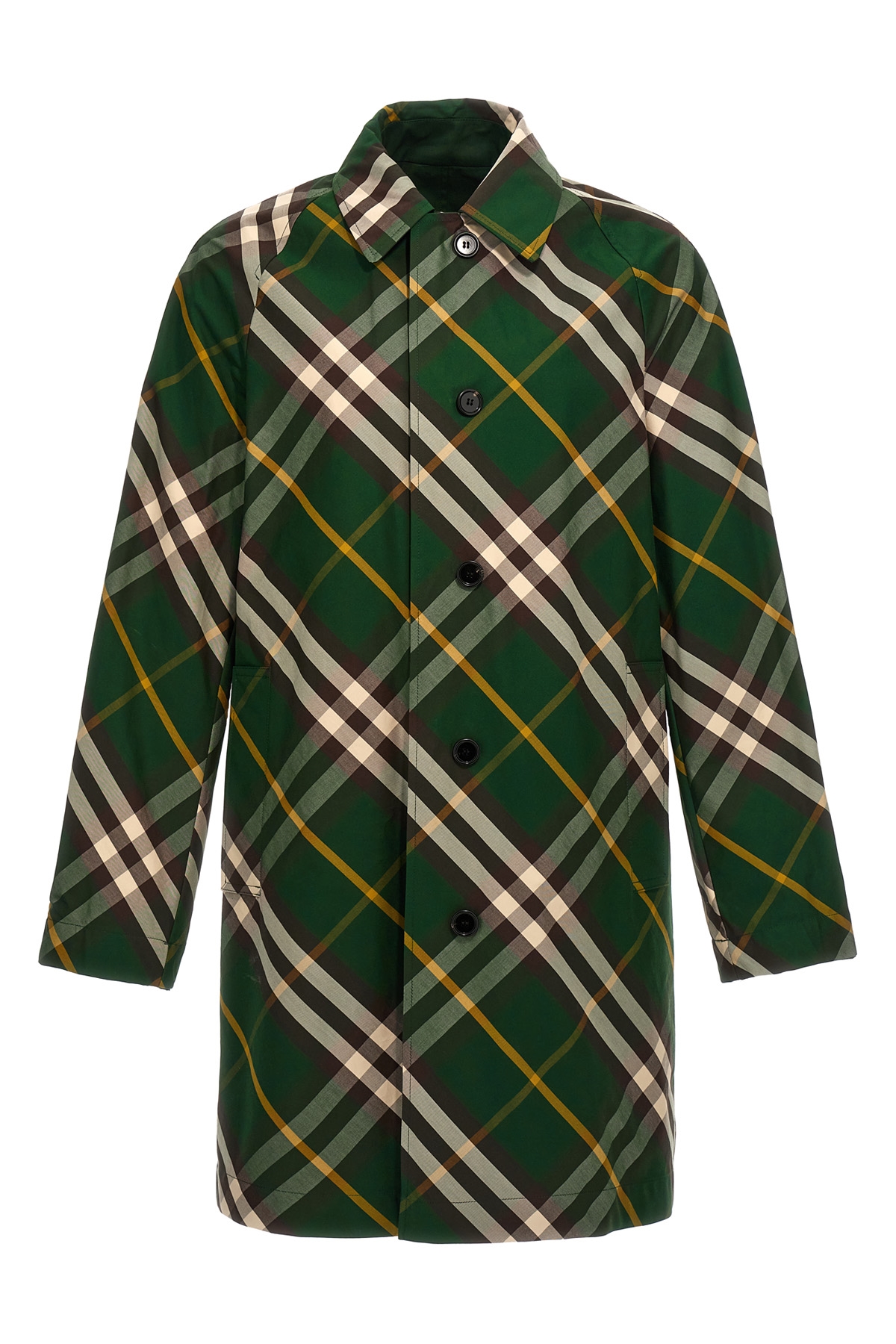 Medium reversible car coat in rainproof cotton gabardine Check print or solid color, button closure, pockets, long sleeves, back split.
