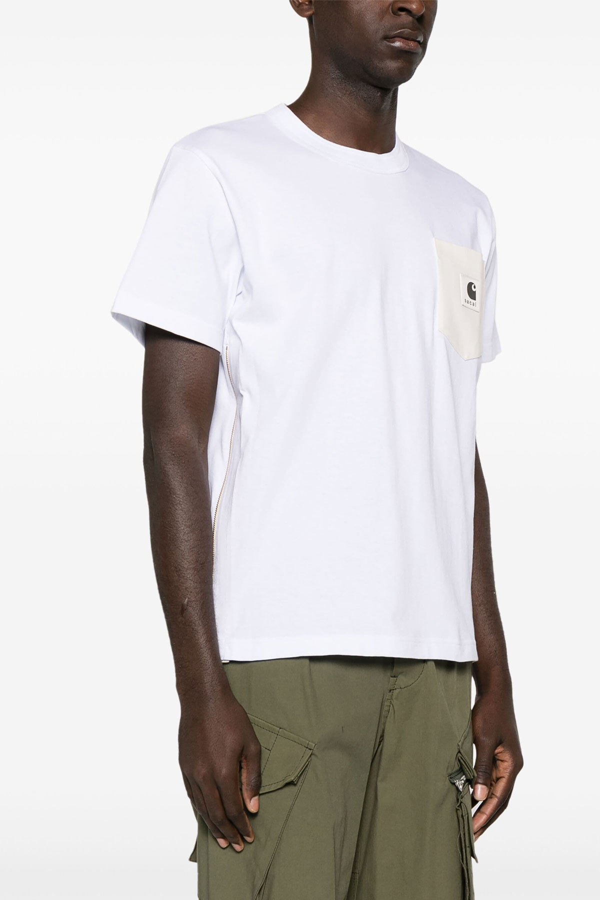 Sacai x Carhartt WIP cotton T-shirt with zip detail on the sides, crew neck, short sleeves, canvas pocket with front logo patch.