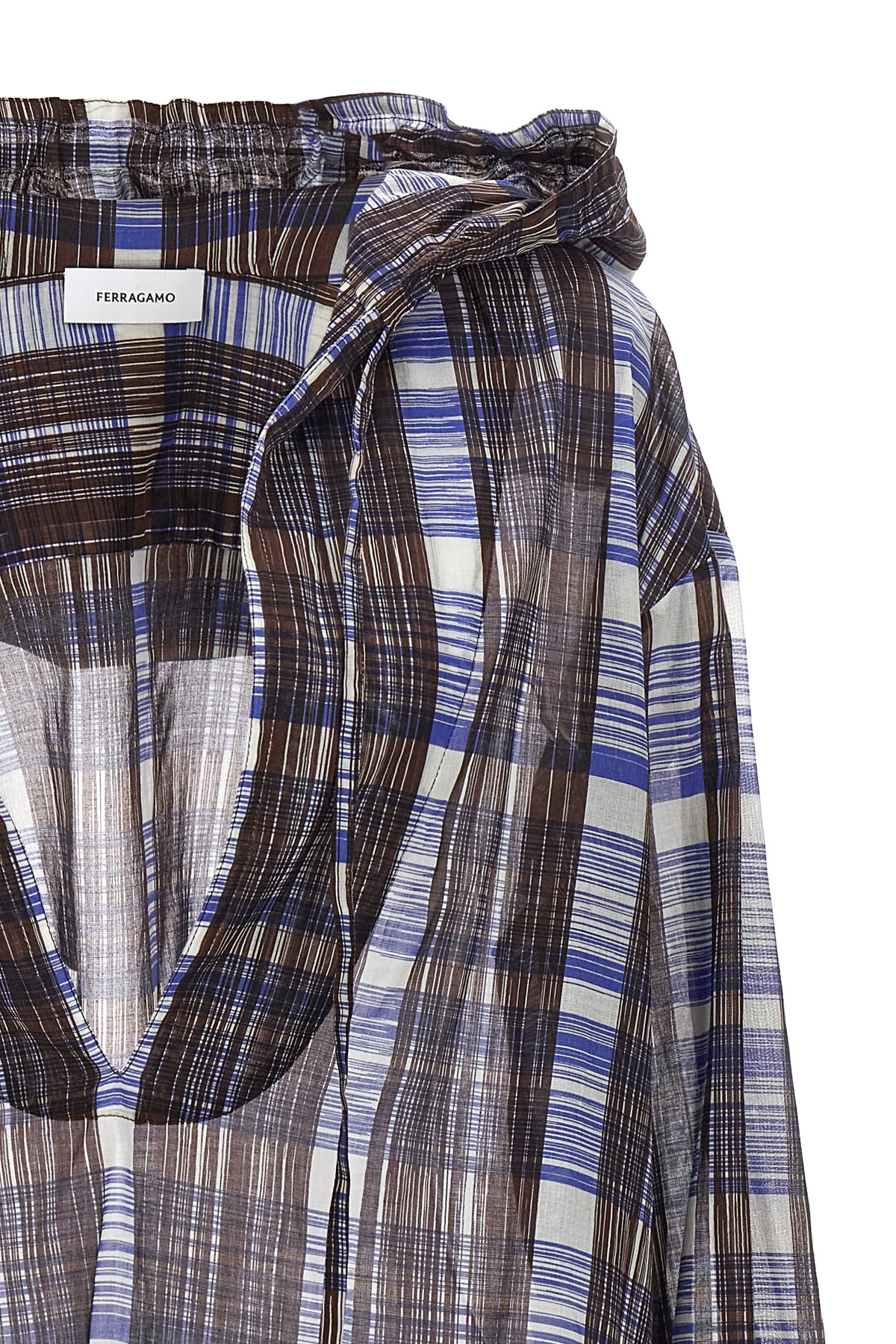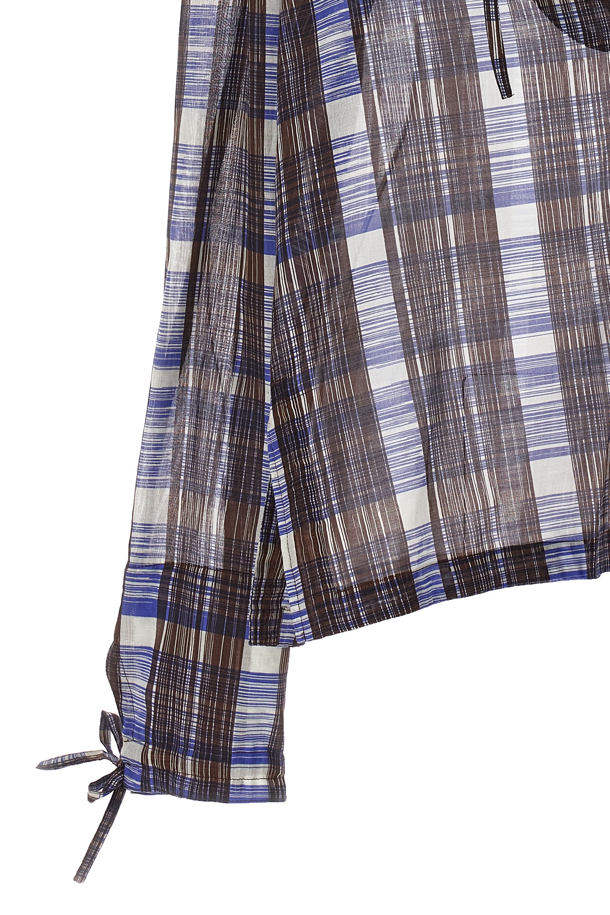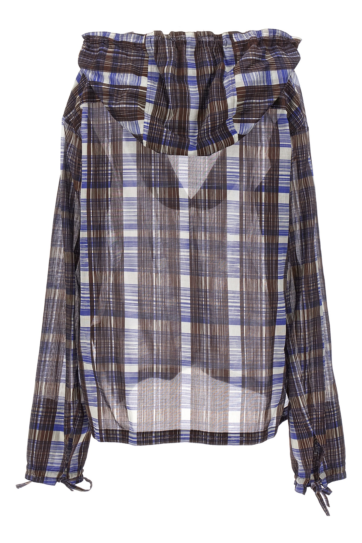 Check print cotton blouse, V-neck, long sleeves with drawstring on the wrist, hood.