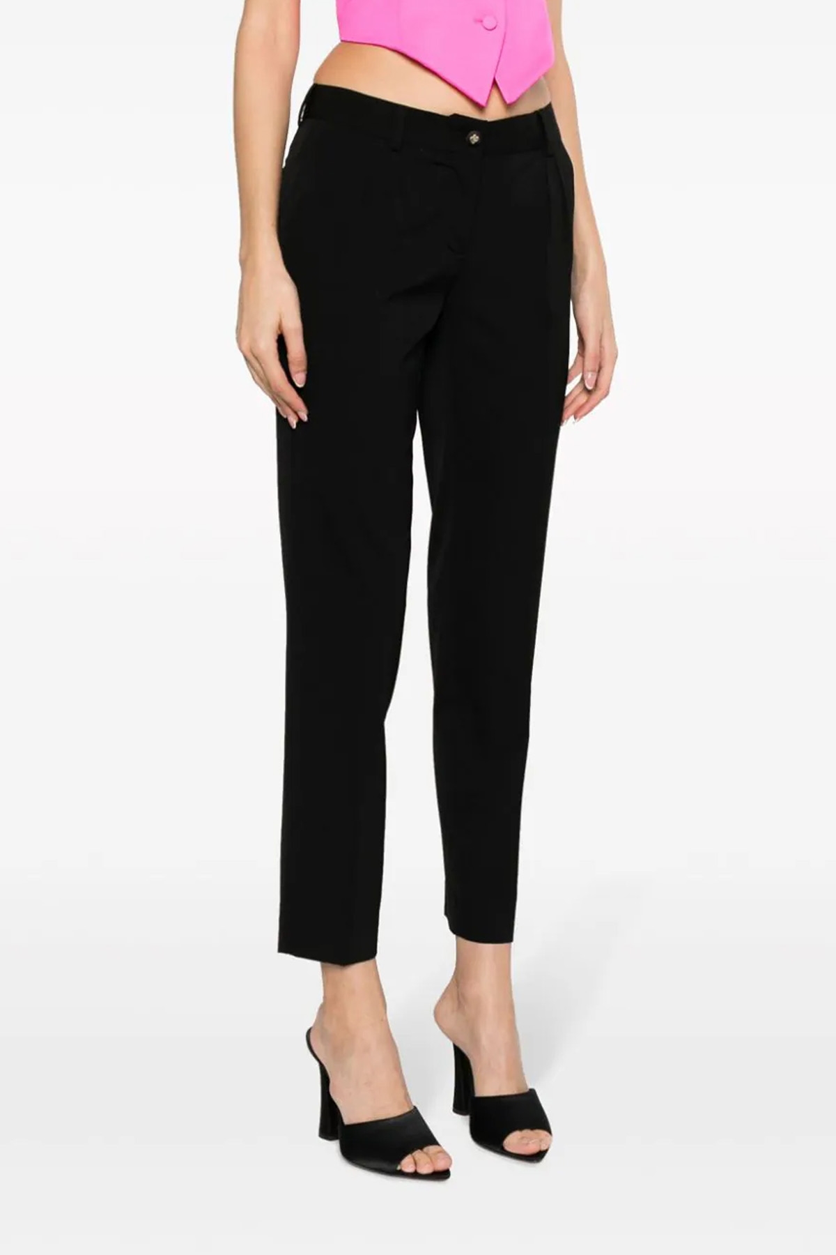 Bistretch wool canvas trousers, zip and button closure, pockets, low waist.