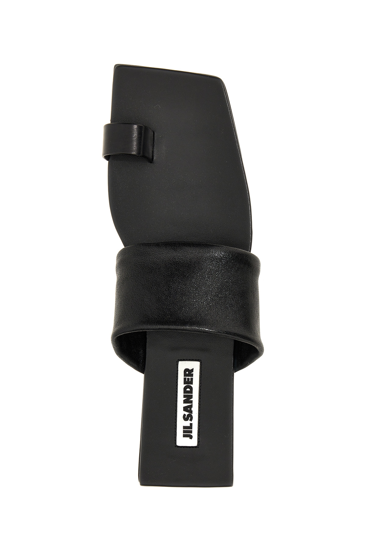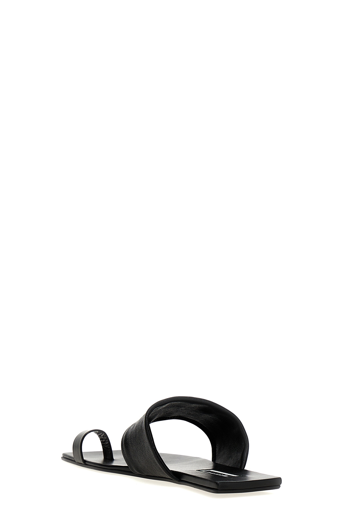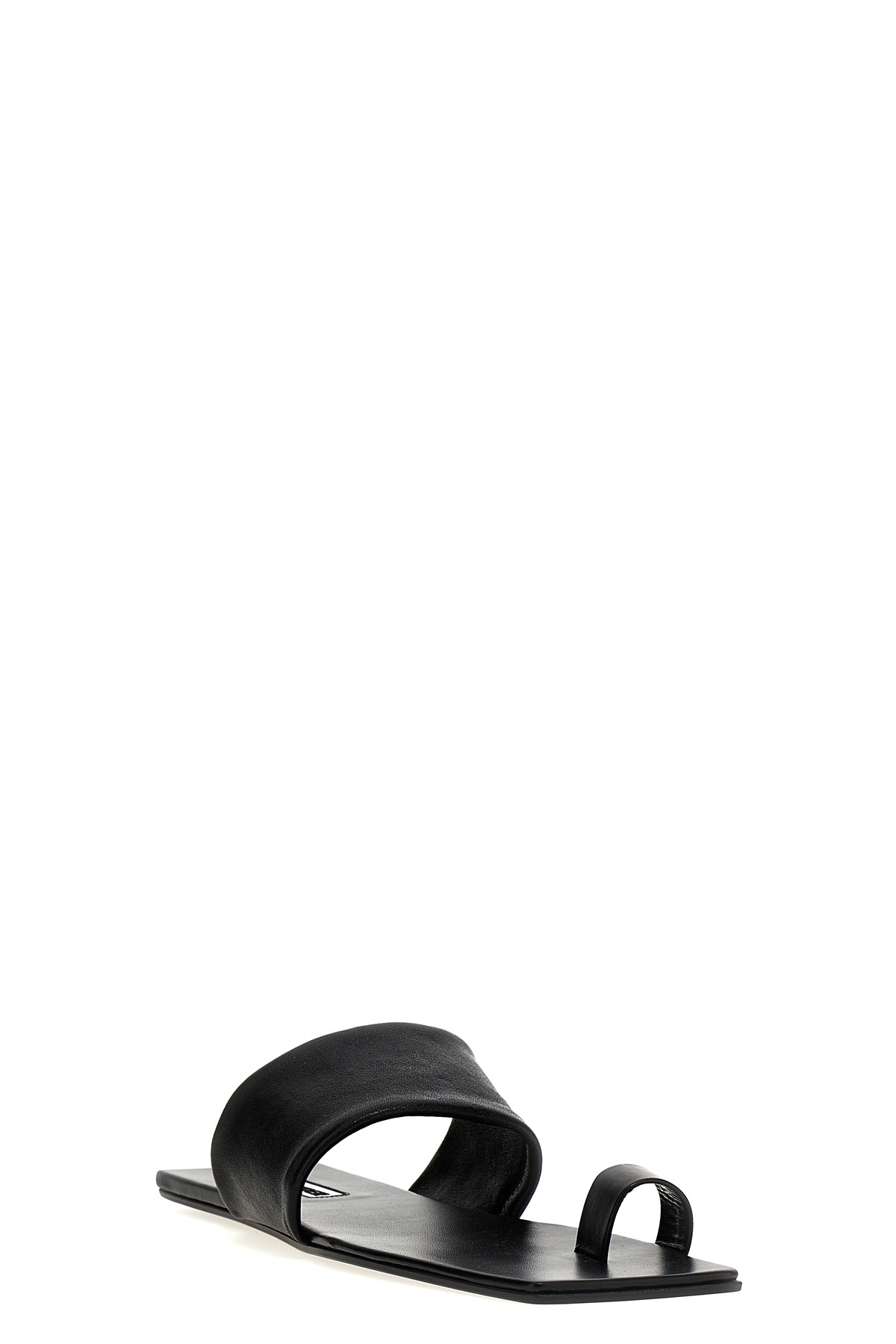Leather sandals with band in the thumb and band on the instep, square toe.