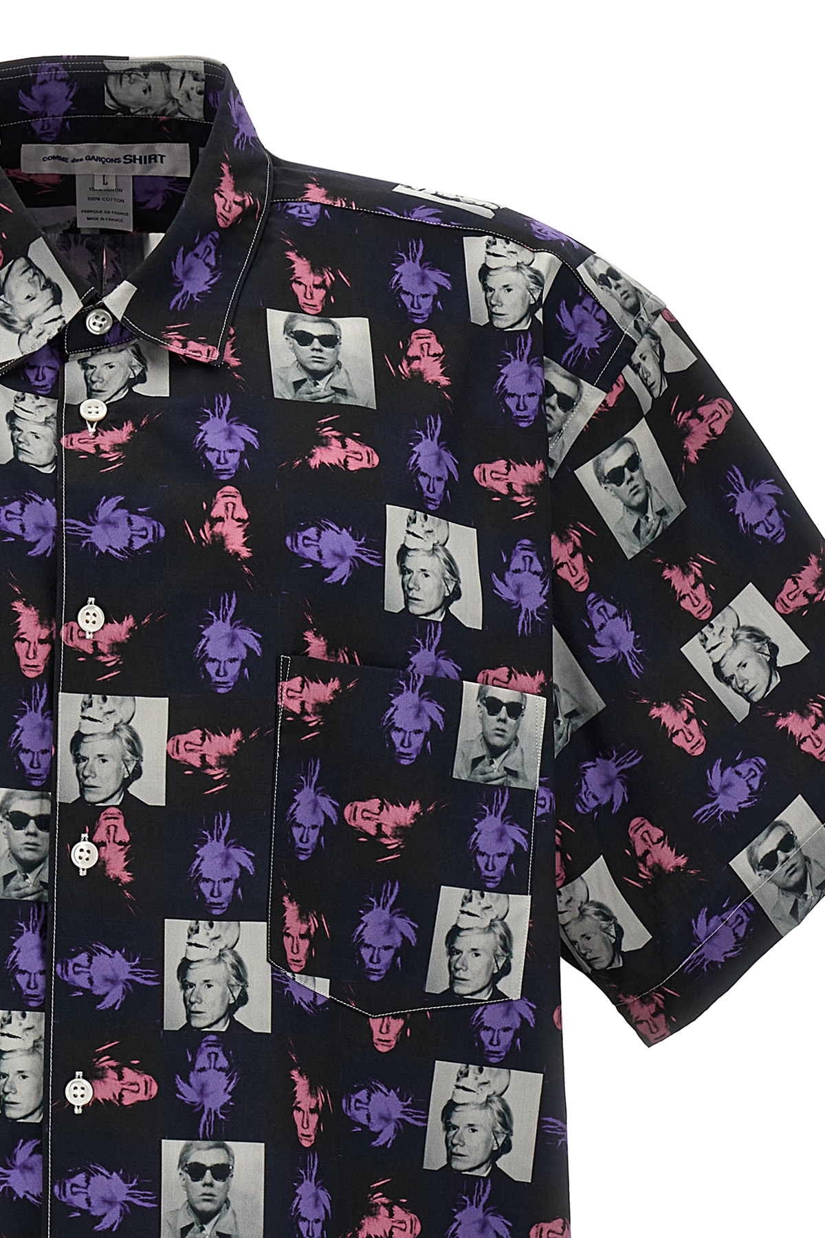'Andy Warhol' cotton shirt with all-over print, front pocket, button closure, short sleeves.