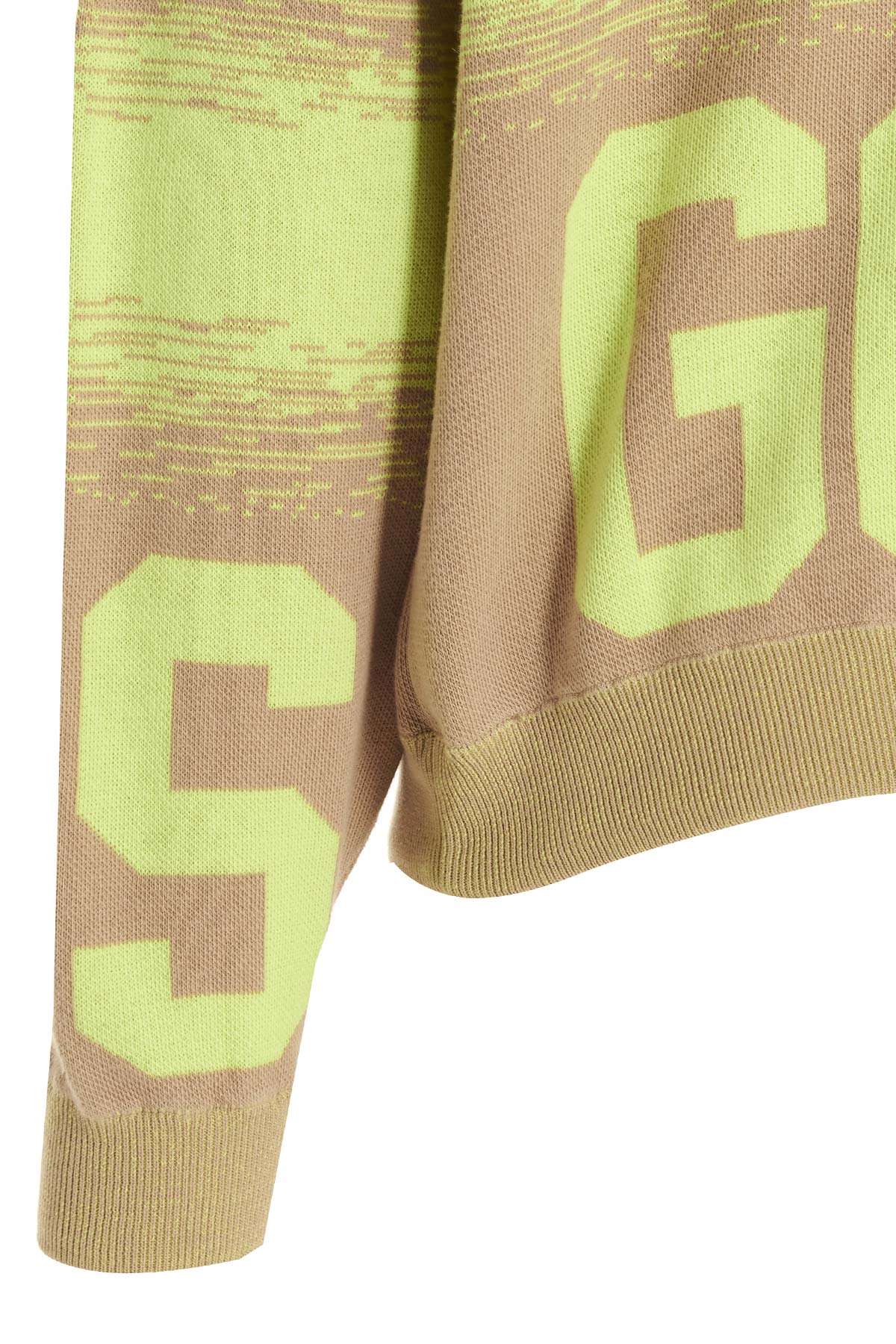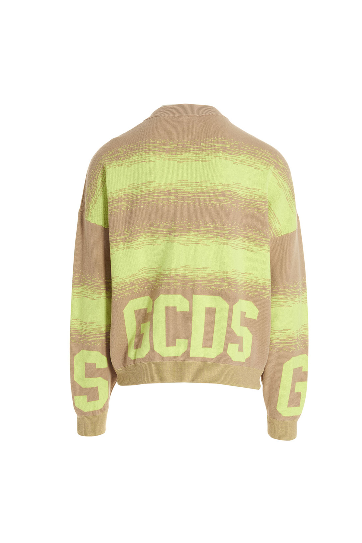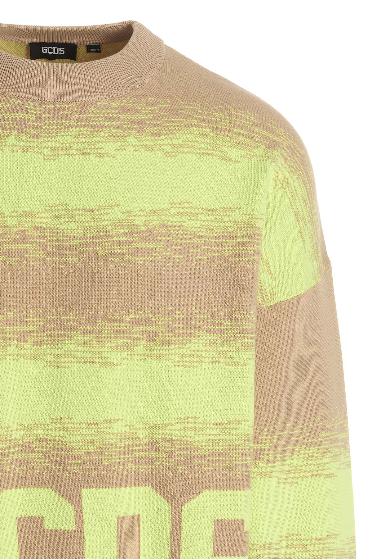 GCDS Low Band Degrade' cotton sweater with jacquard pattern and logo, a crewneck, and long cuffed sleeves.