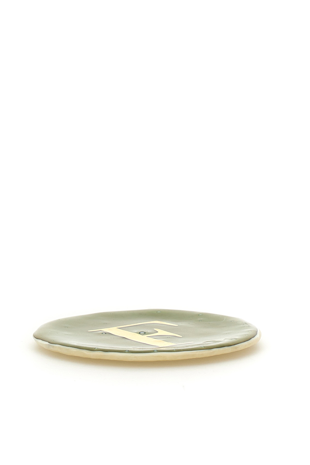 Glass valet tray with the letter 'F' hand-painted in gold.