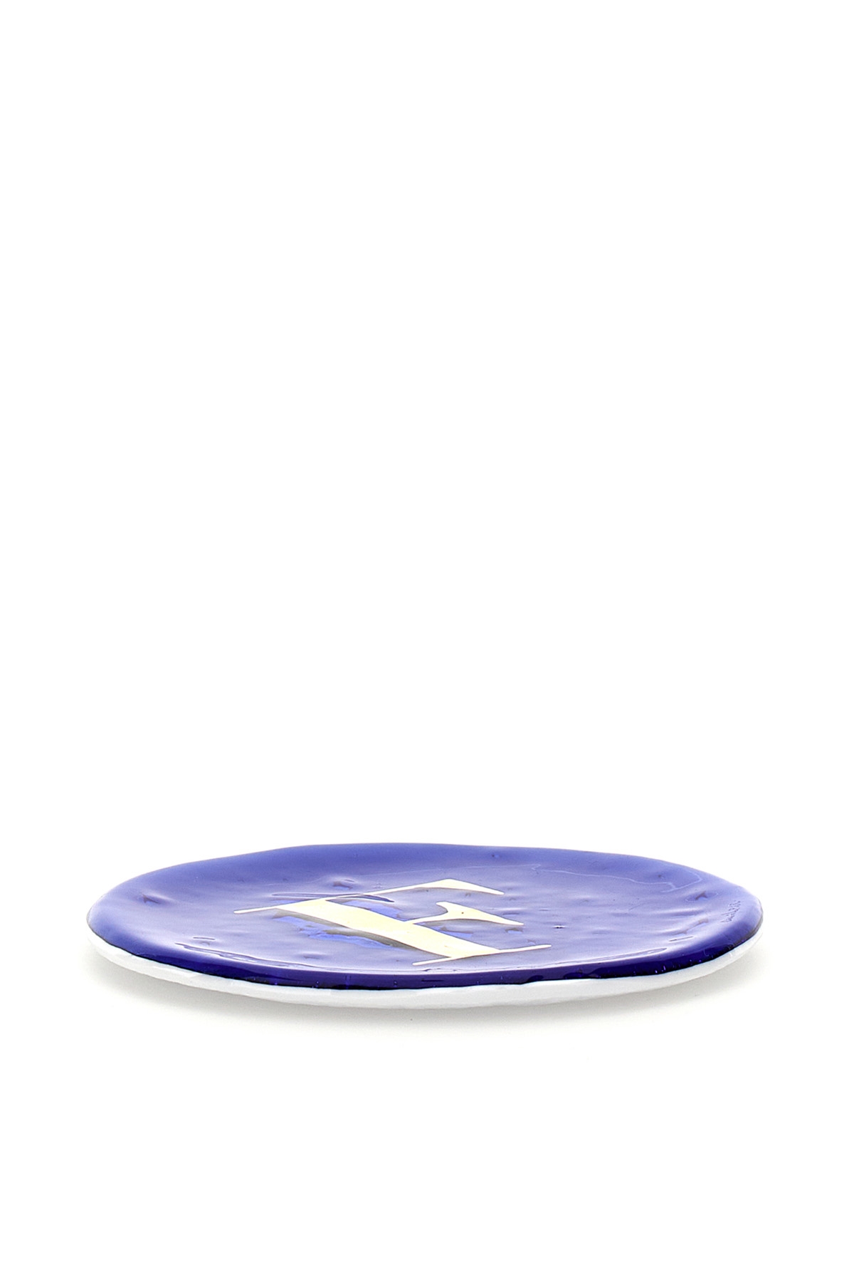 Glass valet tray with the letter 'F' hand-painted in gold.