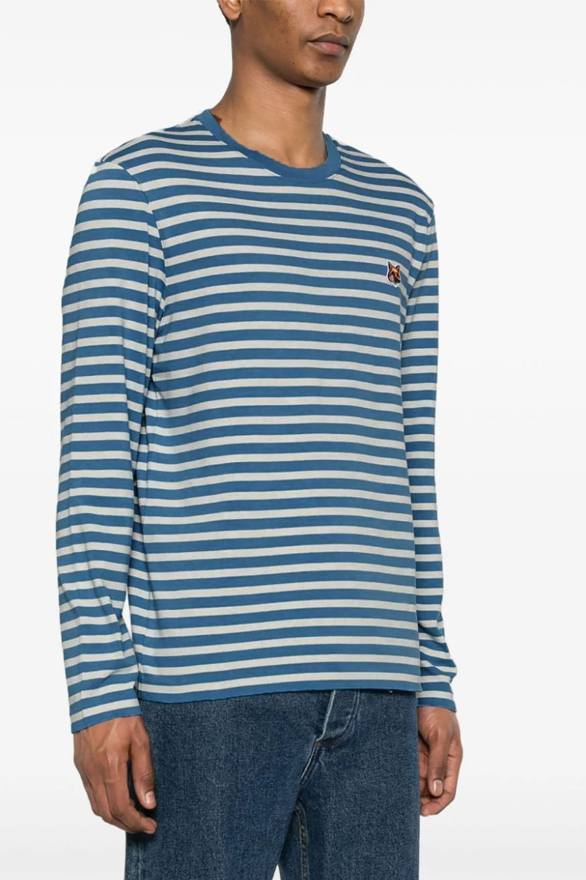 'Fox Head' striped cotton t-shirt with front logo patch, crew neck, long sleeves.