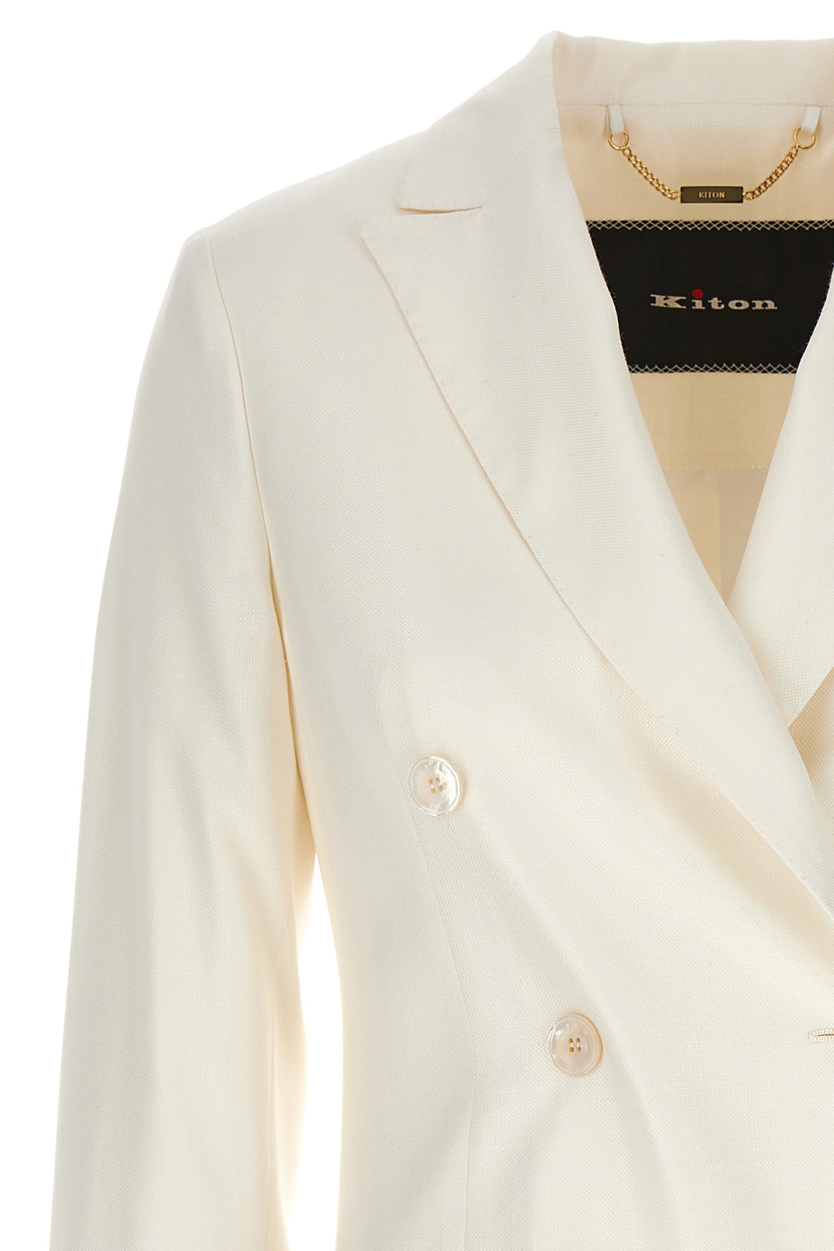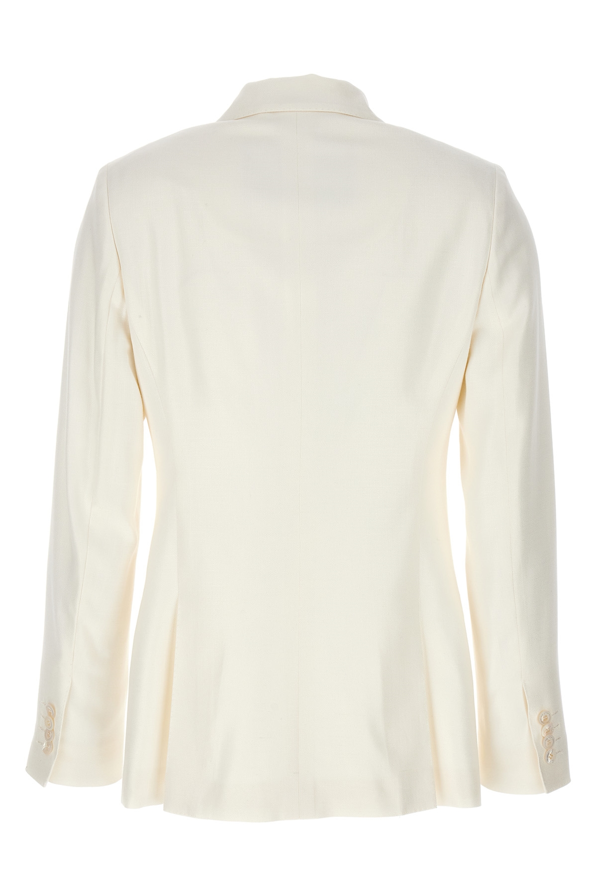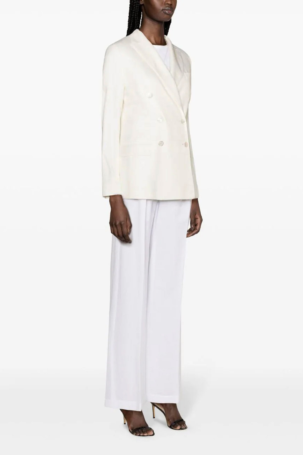 Double-breasted viscose blazer with button closure, pockets, long sleeves, back vents.