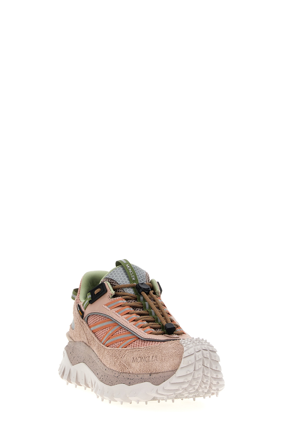 'Trailgrip' nubuck sneakers with mesh insole, lace-up closure, carbon fiber layer between midsole and tread, Vibram MEGAGRIP rubber tread.