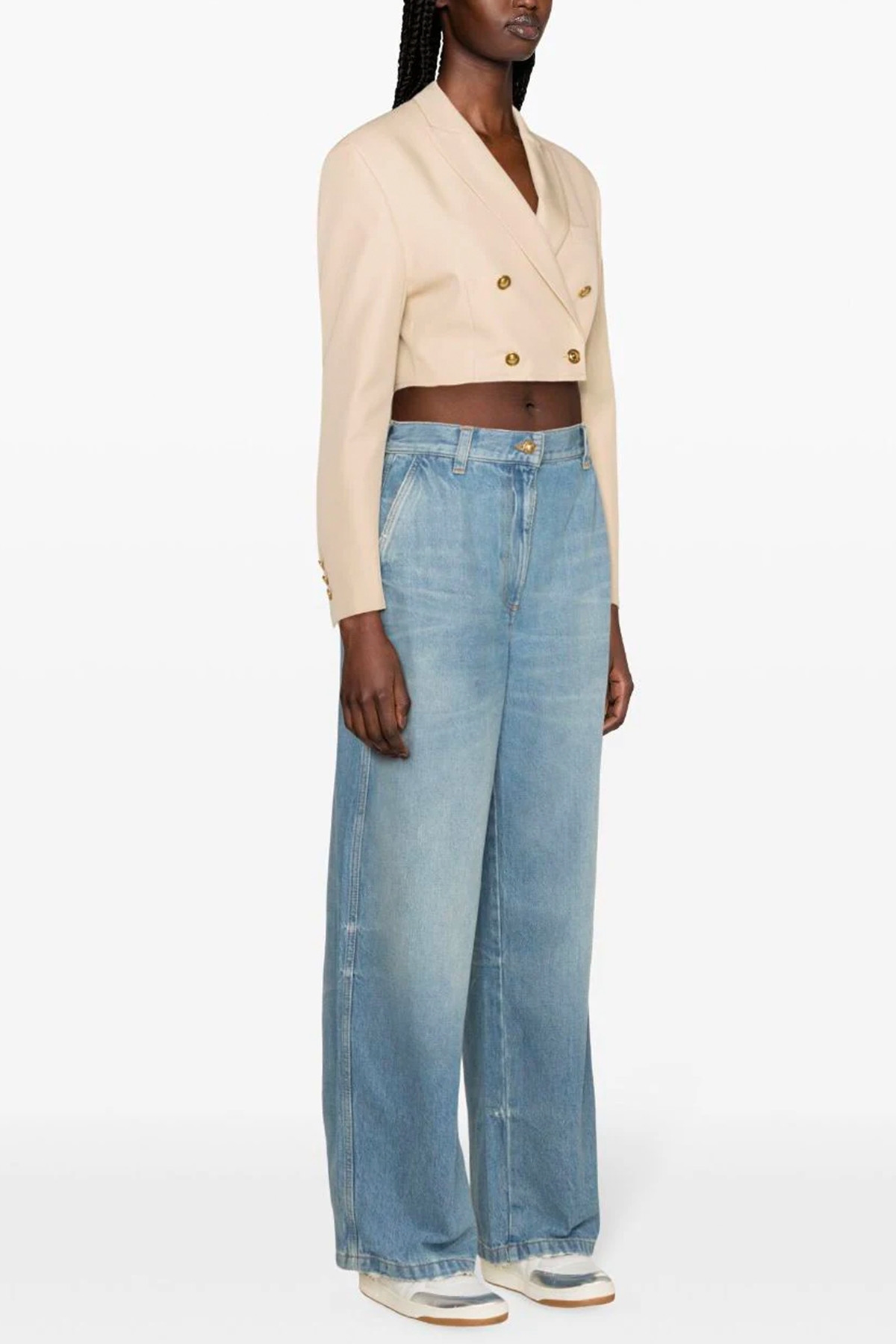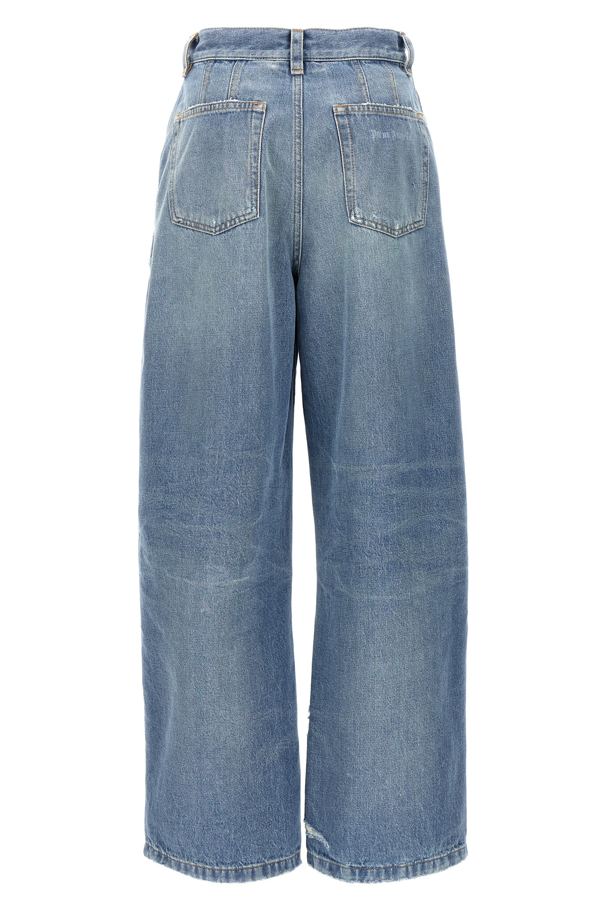 'Washed Logo' cotton denim jeans with used-effect details, zip and button closure, pockets, wide leg, back logo.