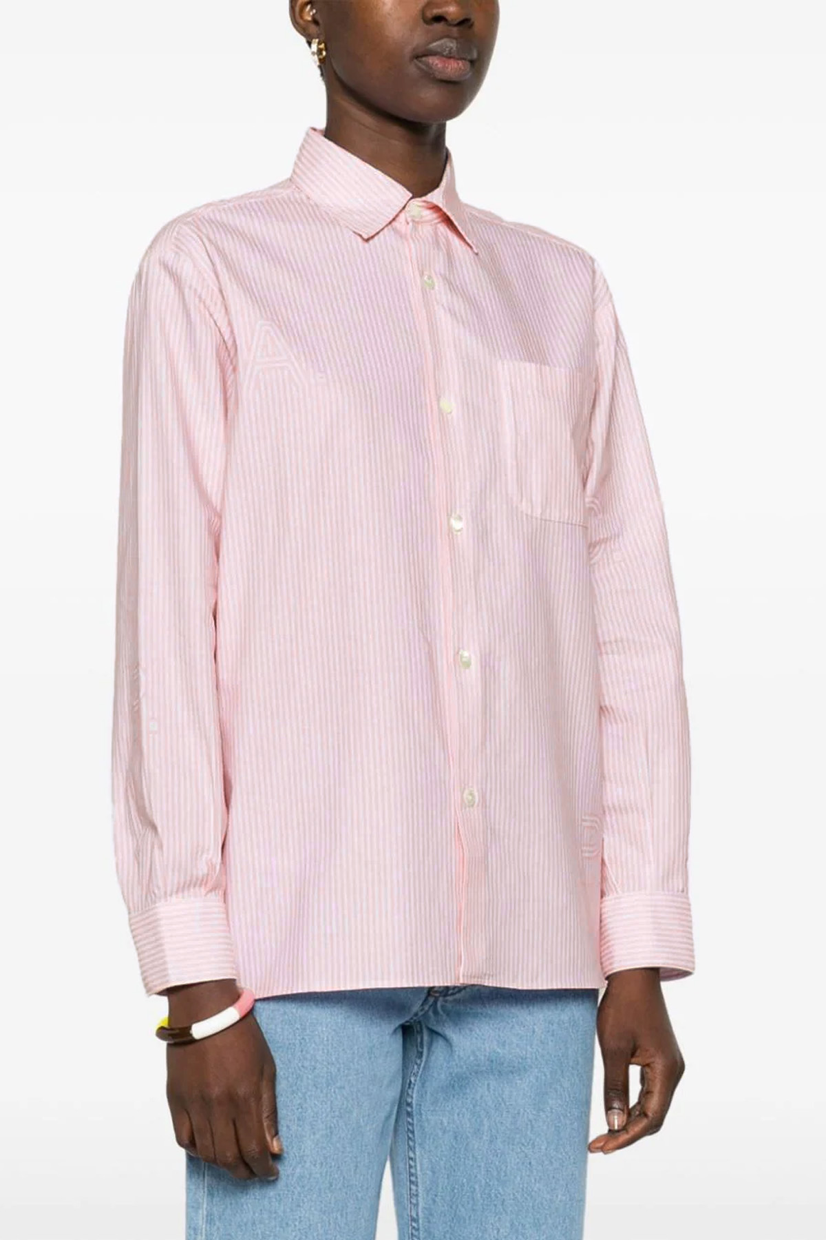 'Sela' cotton shirt with striped pattern with logo insertion and button closure. Chest pocket.