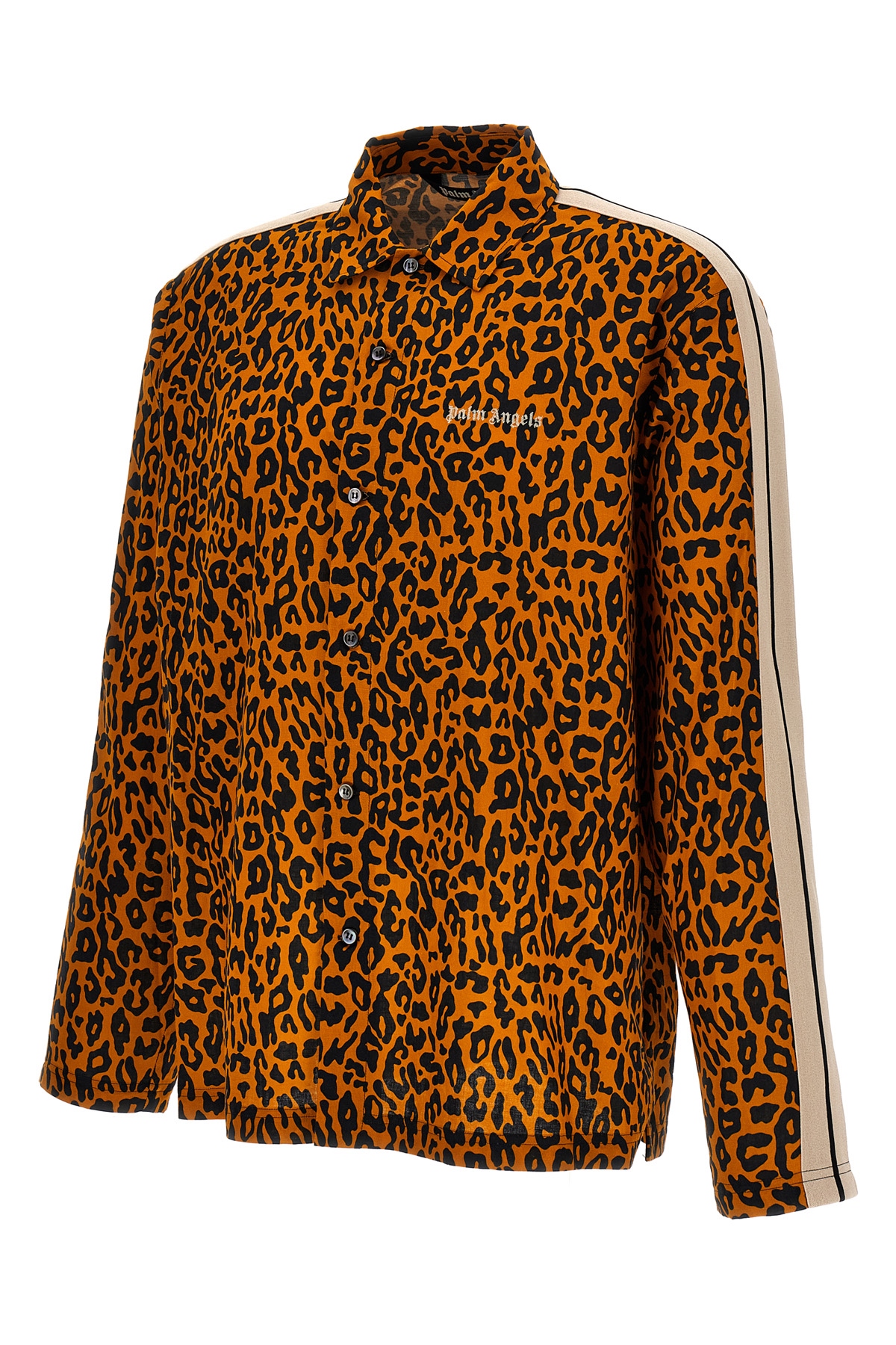 'Cheetah Track' shirt in linen and cotton with animal print, contrast bands on the sleeves, front logo embroidery, button closure, long cuffed sleeves.