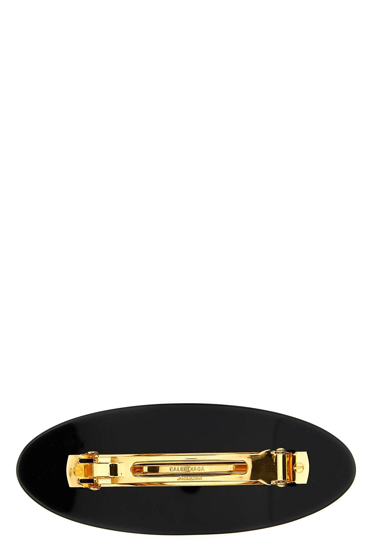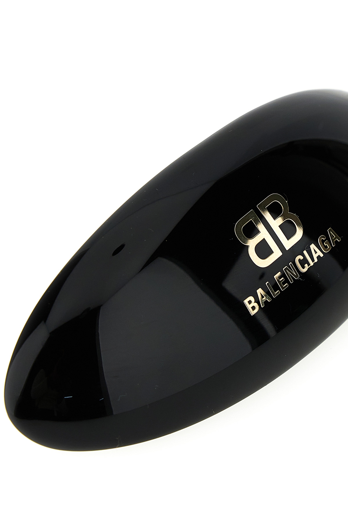 Resin hair clip with logo.
