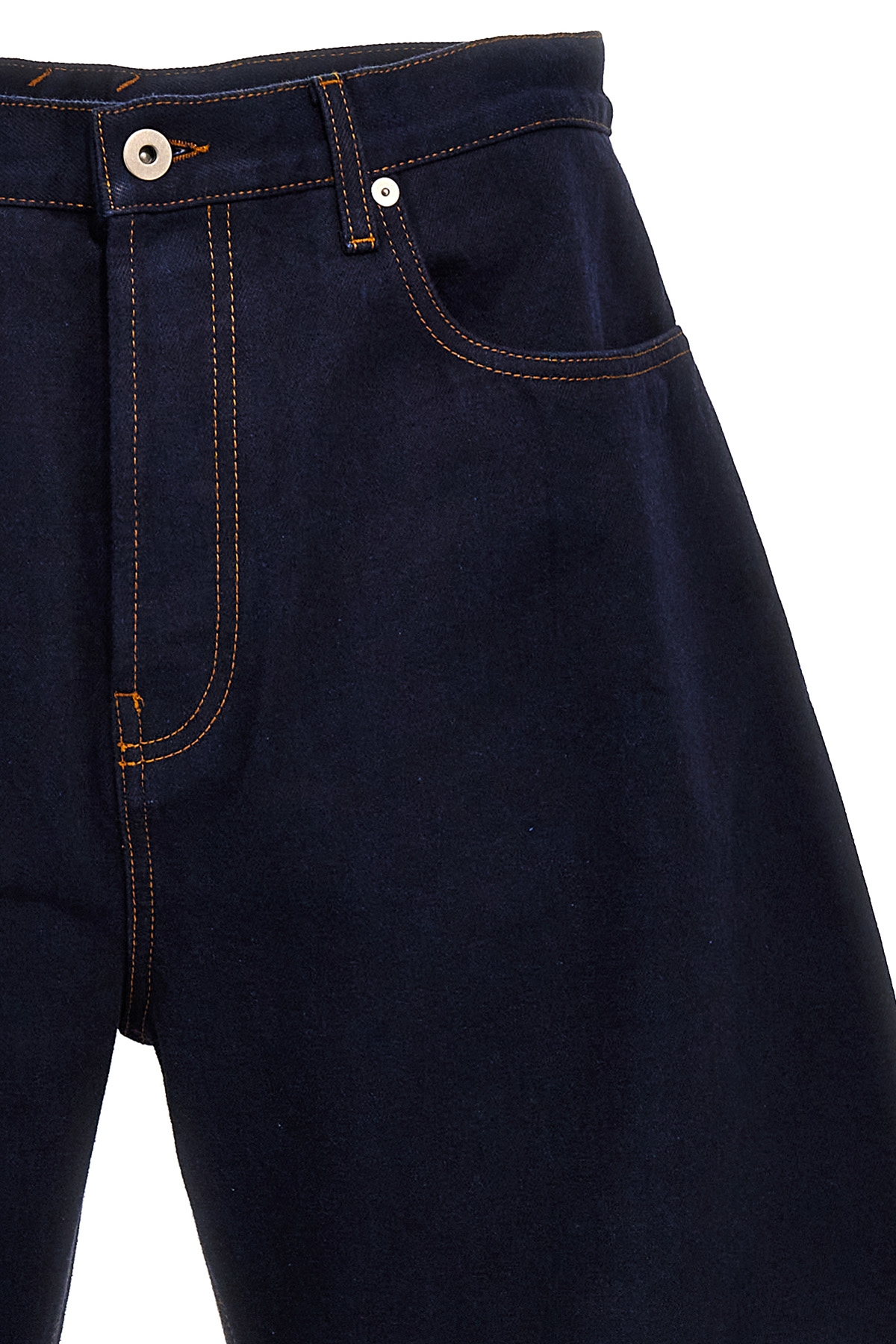 Heavy Japanese cotton denim jeans with pink print lining visible on the ankle turn-up, button closure.