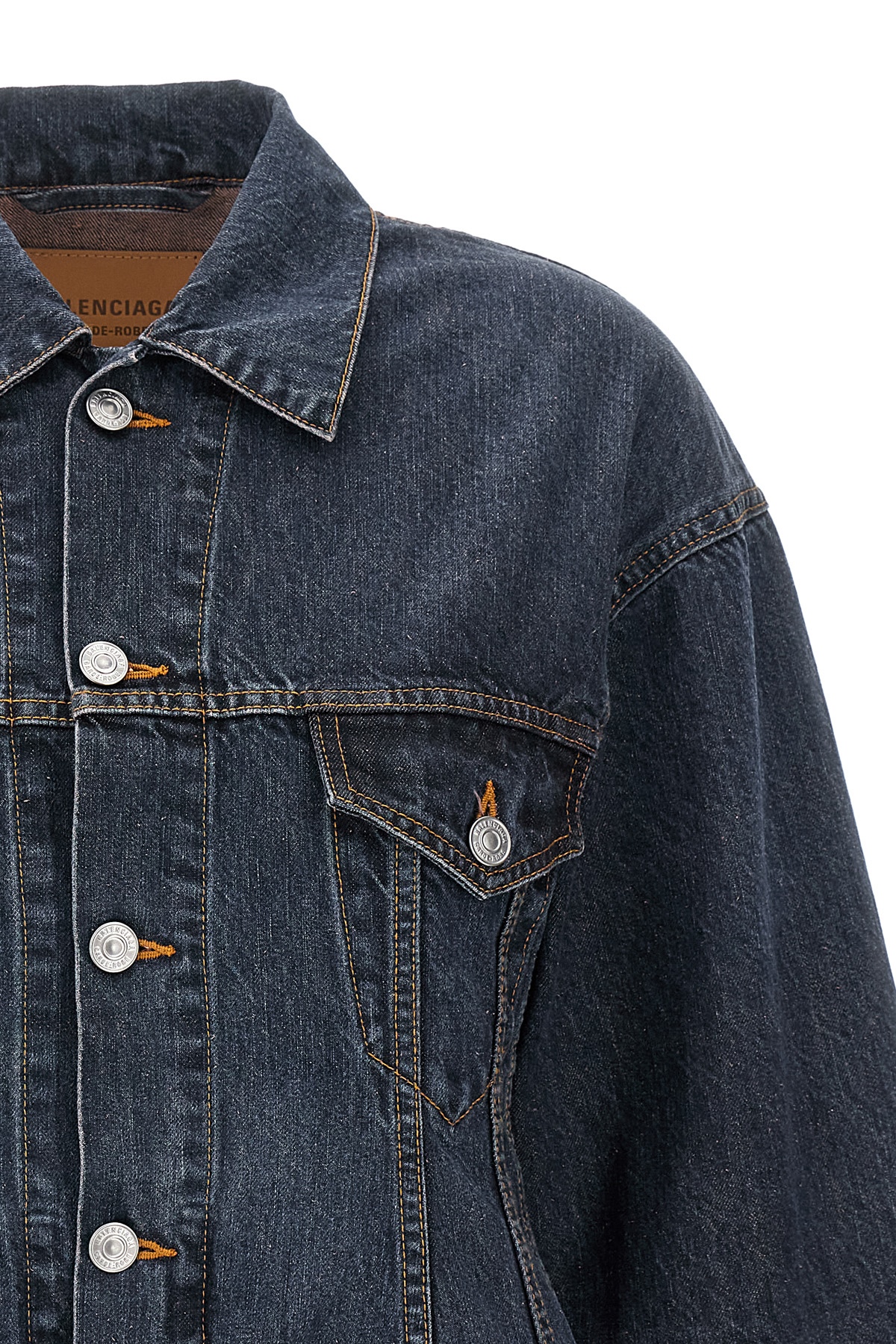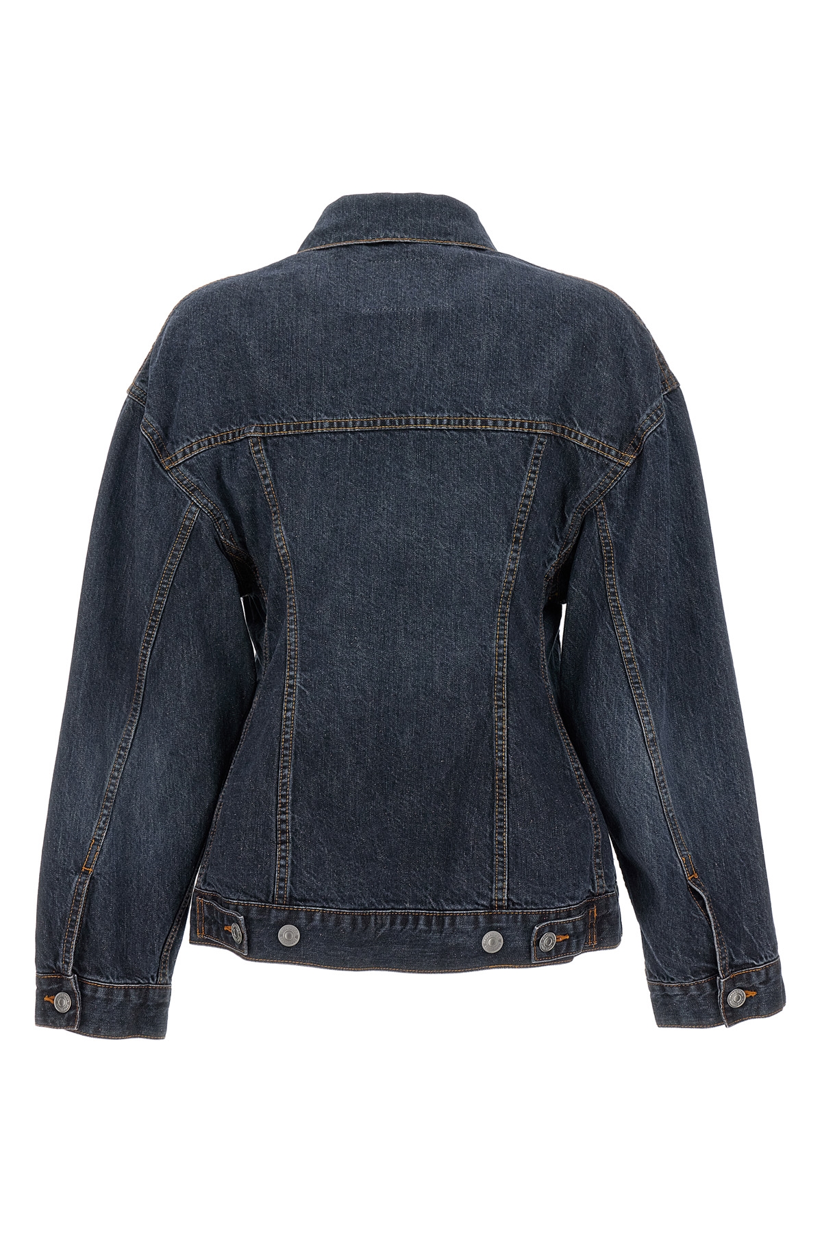'Hourglass' Japanese denim jacket with button closure, tight waistband, pockets, long cuffed sleeves.